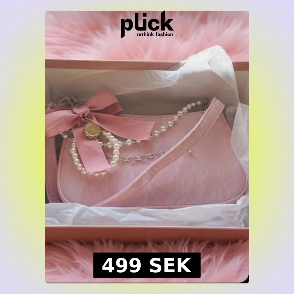 Superfin rosa axelväska i mjuk sammet med quiltat mönster och silverdetaljer. Väskan har en kedja och pärlhandtag, samt en söt rosett med berlock. Perfekt för dig som gillar gulliga accessoarer och vill sticka ut med en unik look. With free bow bagcharm and free pink box