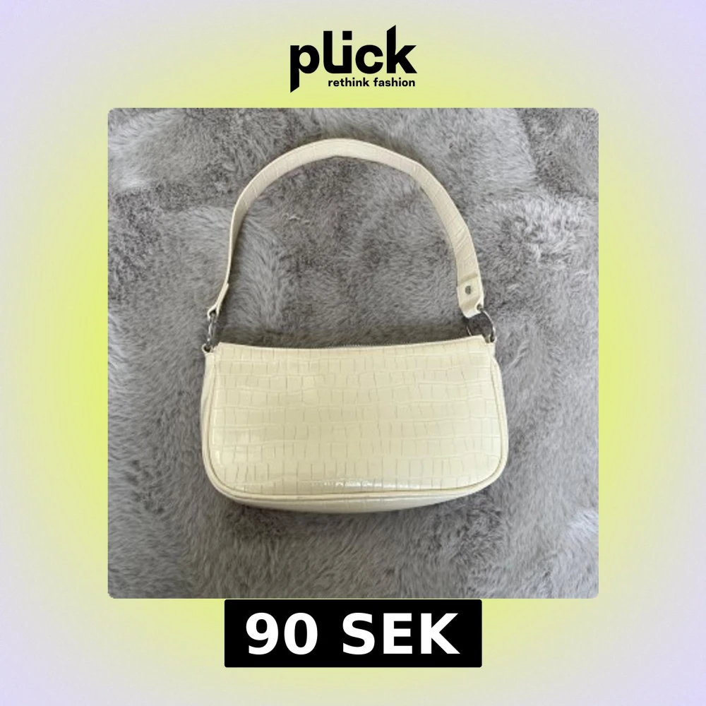 Snygg vit handväska med lite mönster och silvriga metalldetaljer. Väskan har dragkedja och en bred axelrem. Perfekt för att lyfta vilken outfit som helst. Köpt på H&M för 200 kr. Jätte fin och bra!