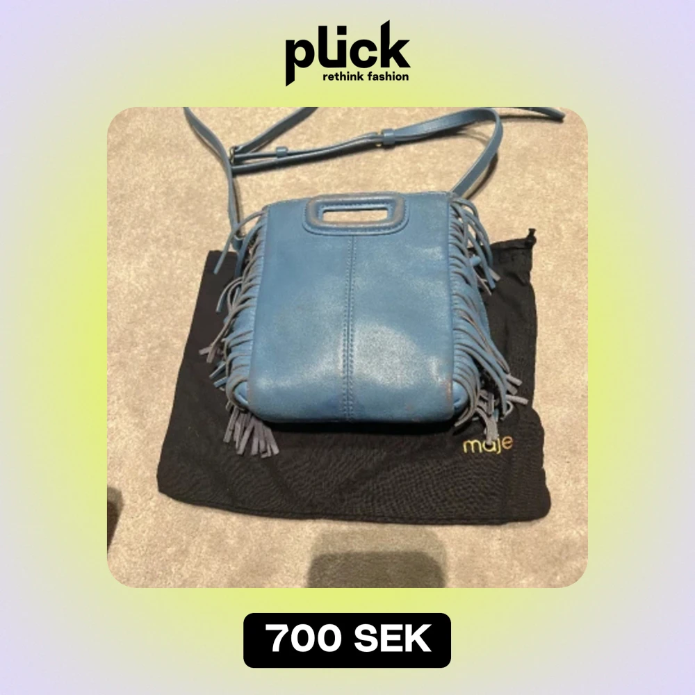 Ljusblå maje väska med fransar. Man kan även ta av bandet. Använd. Pris kan diskuteras