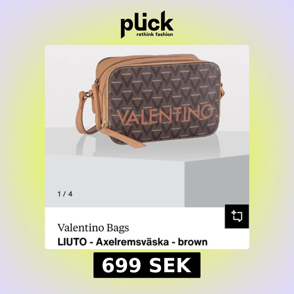Snygg axelremsväska från Valentino i brunt med logomönster och stora bokstäver framtill. Väskan har justerbar rem, två dragkedjefack och detaljer i ljusbrunt skinnliknande material. Perfekt storlek för det viktigaste och ger en lyxig vibe till din outfit.kostar 1195,00kr