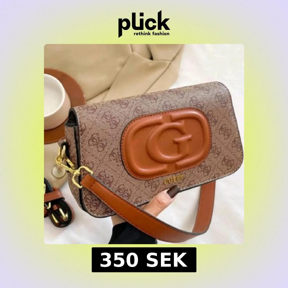 Snygg brun axelväska med GG-logga i relief på framsidan. Väskan har ett mönstrat yttre med små loggor och detaljer i ljusbrunt skinn. Guldiga metalldetaljer och justerbar axelrem. Perfekt för dig som gillar stilrena accessoarer.
