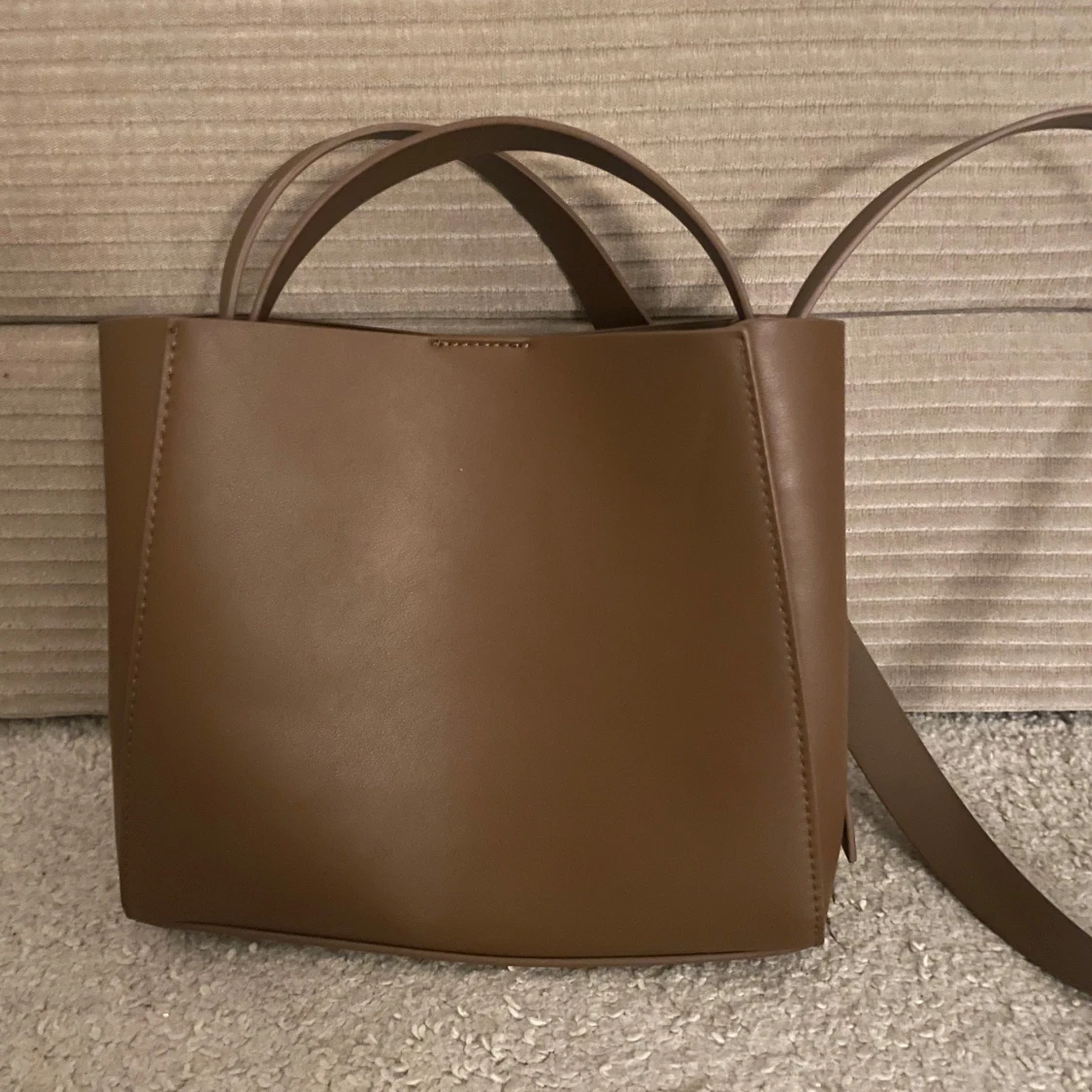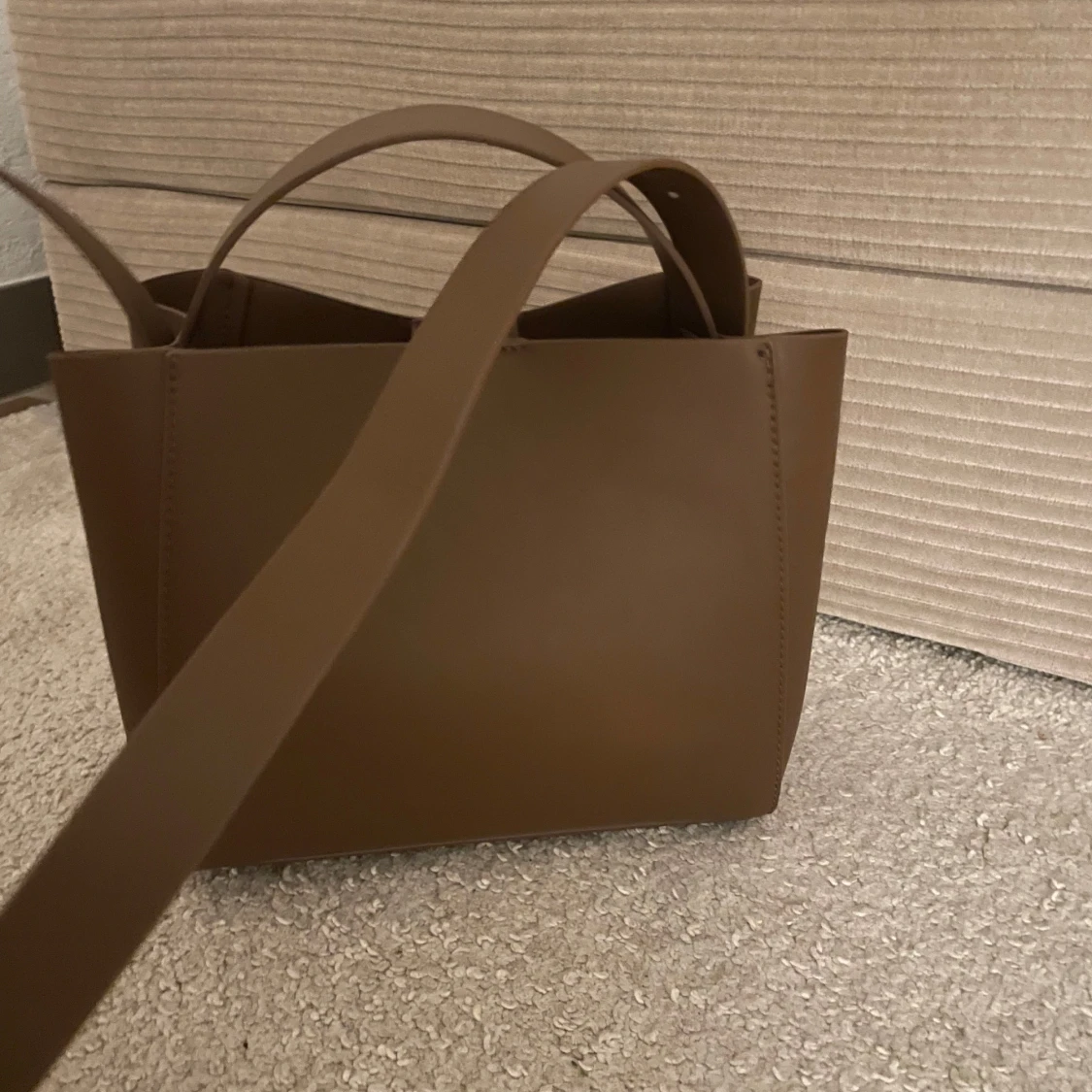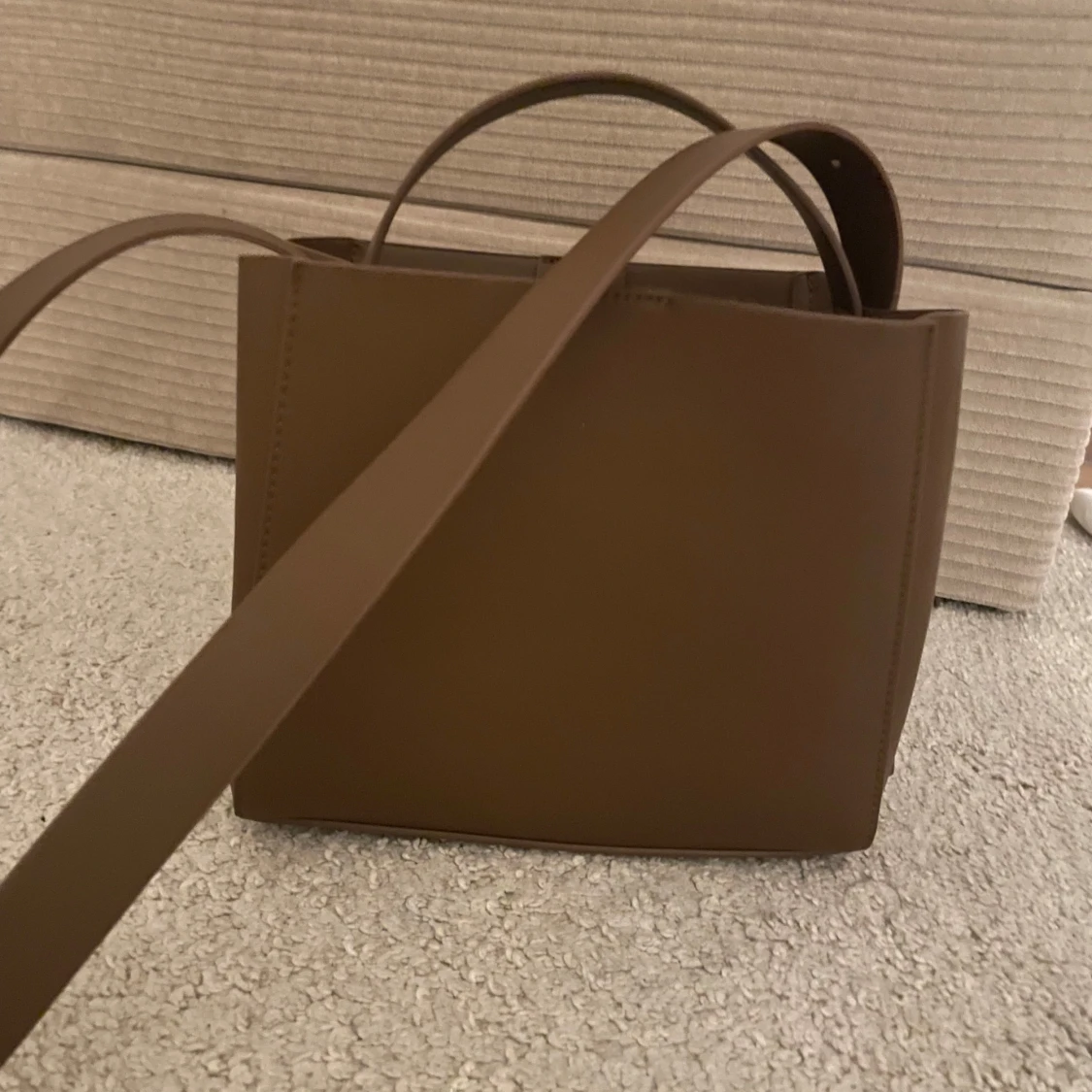 Gina tricot pu midi bag. Snygg brun axelväska i stilren boxig modell från Gina Tricot. Väskan har både handtag och lång axelrem.
