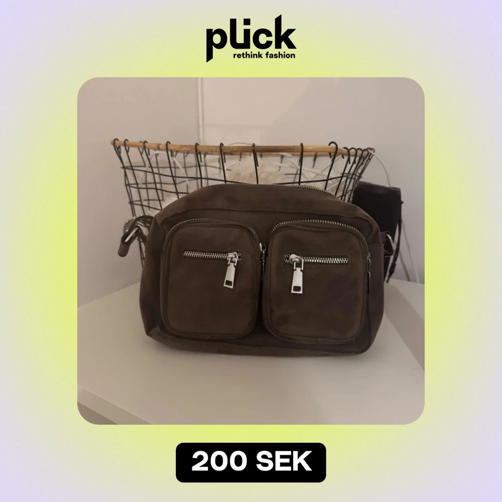 Säljer en snygg brun axelväska från Noelia i mocka. Väskan har två praktiska ytterfickor med dragkedja och en axelrem med nitar. Perfekt för vardagsbruk och rymmer det mesta du behöver. Inuti finns en extra ficka för för småsaker. Använt fåtals gånger! långt band kommer med
