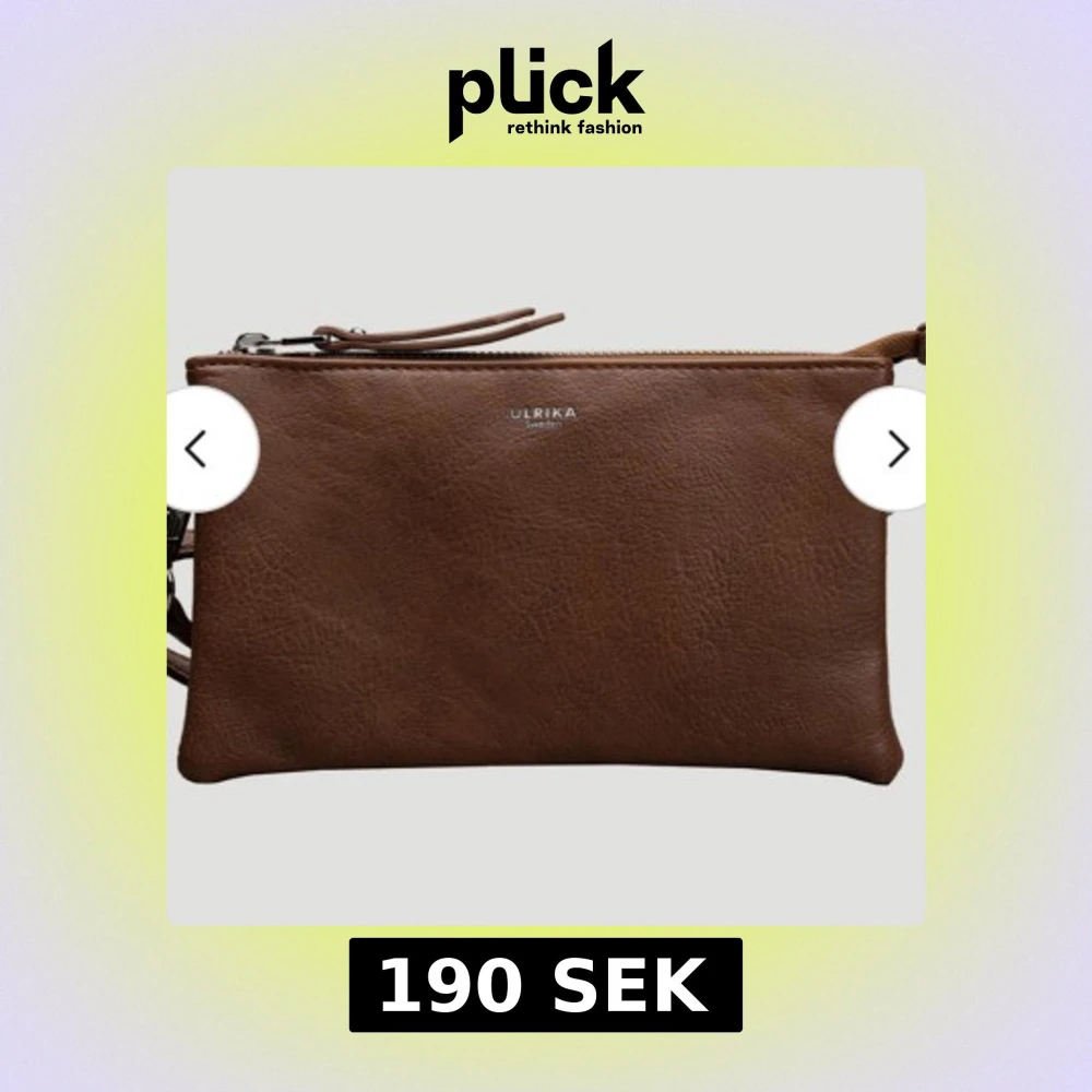 Supersnygg brun axelväska från Ulrika Sweden i skinnimitation med silverfärgade dragkedjor. Den har några små defekter, A:et har ramlat av. Kommer en extra lite längre axelrem med.