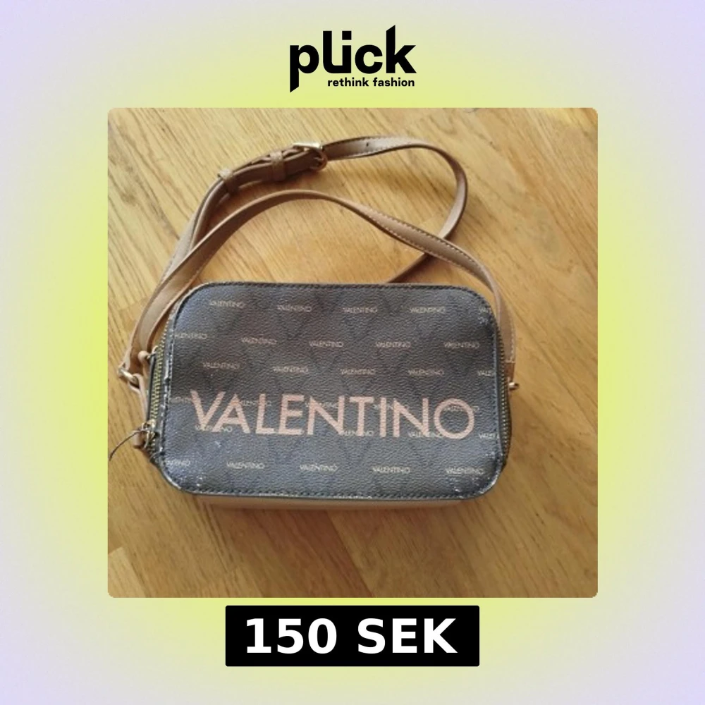 Snygg brun axelväska från Valentino med justerbar rem. Väskan har ett mönster med Valentino-loggan och två dragkedjor upptill. Perfekt för att bära dina nödvändigheter med stil.
