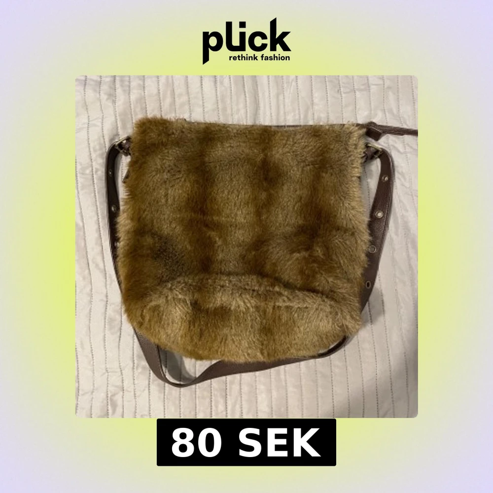 Säljer en unik brun axelväska i pälsimitation med justerbar axelrem. Väskan har en dragkedja på insidan för extra säkerhet och är perfekt för att ge din outfit en trendig touch. Den är rymlig och har en praktisk innerficka.