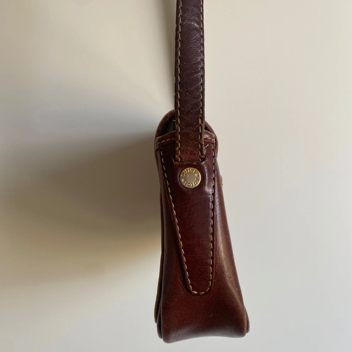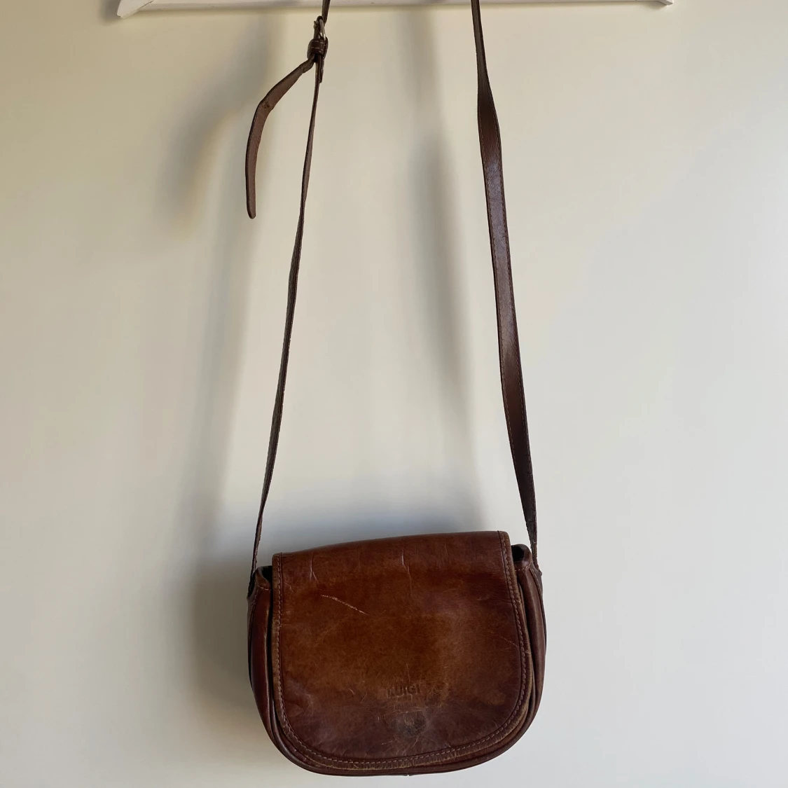 Säljer en klassisk brun axelväska i äkta skinn. Väskan har justerbar axelrem och är perfekt storlek för det viktigaste.