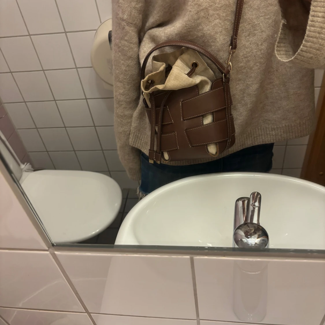 Brun axelväska i skinn med snörning