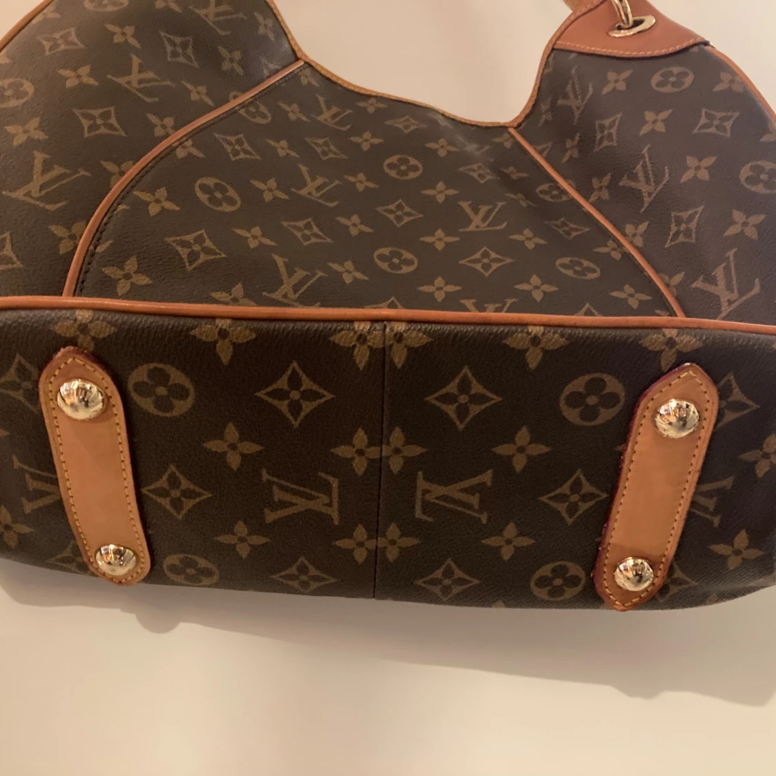 Snygg brun axelväska med det klassiska monogrammönstret. Jag köpte den som andrahand äktheten ej garanterad.