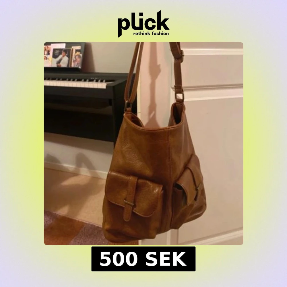 Säljer en brun axelväska i skinn med två stora fickor framtill och justerbar rem. Väskan har ett rymligt huvudfack med svart innerfoder och en mindre innerficka med dragkedja. Perfekt för dig som vill ha plats för allt du behöver under dagen.
