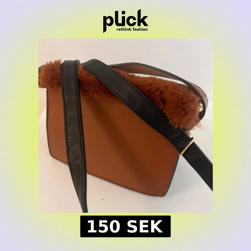 Säljer en brun axelväska från River Island med mjuk pälsimitation och detaljer i svart skinn. Väskan har ett brett axelband med ormskinnsmönster och guldfärgat spänne. Insidan har flera fack och dragkedja. Perfekt för dig som vill sticka ut med en unik accessoar.