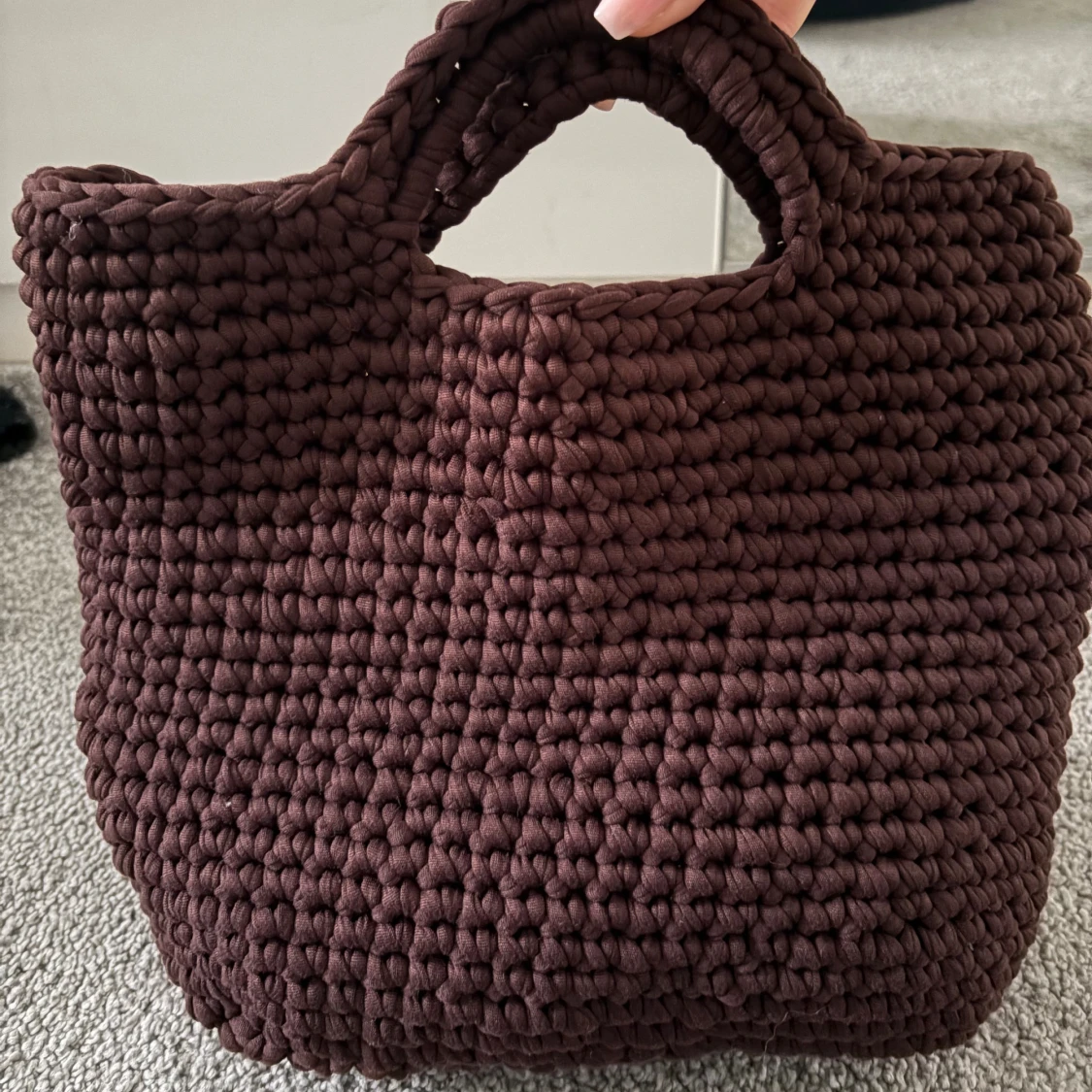 Brun handgjord stickad handväska