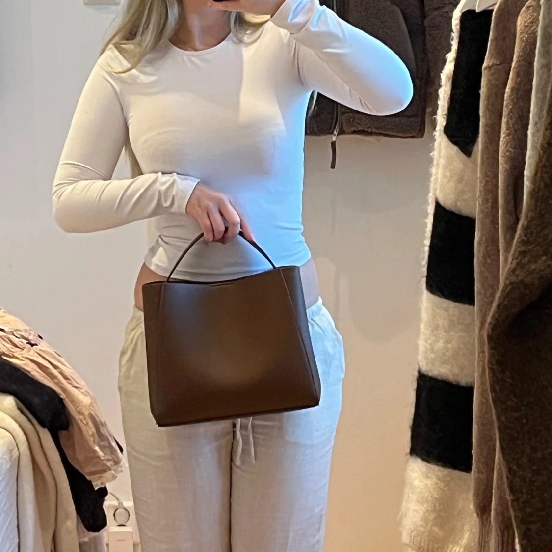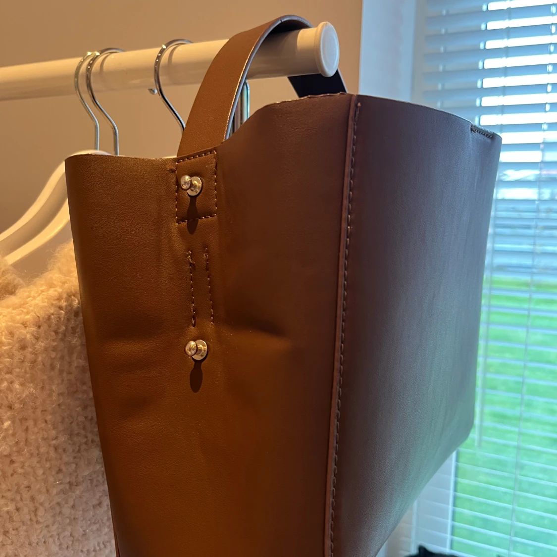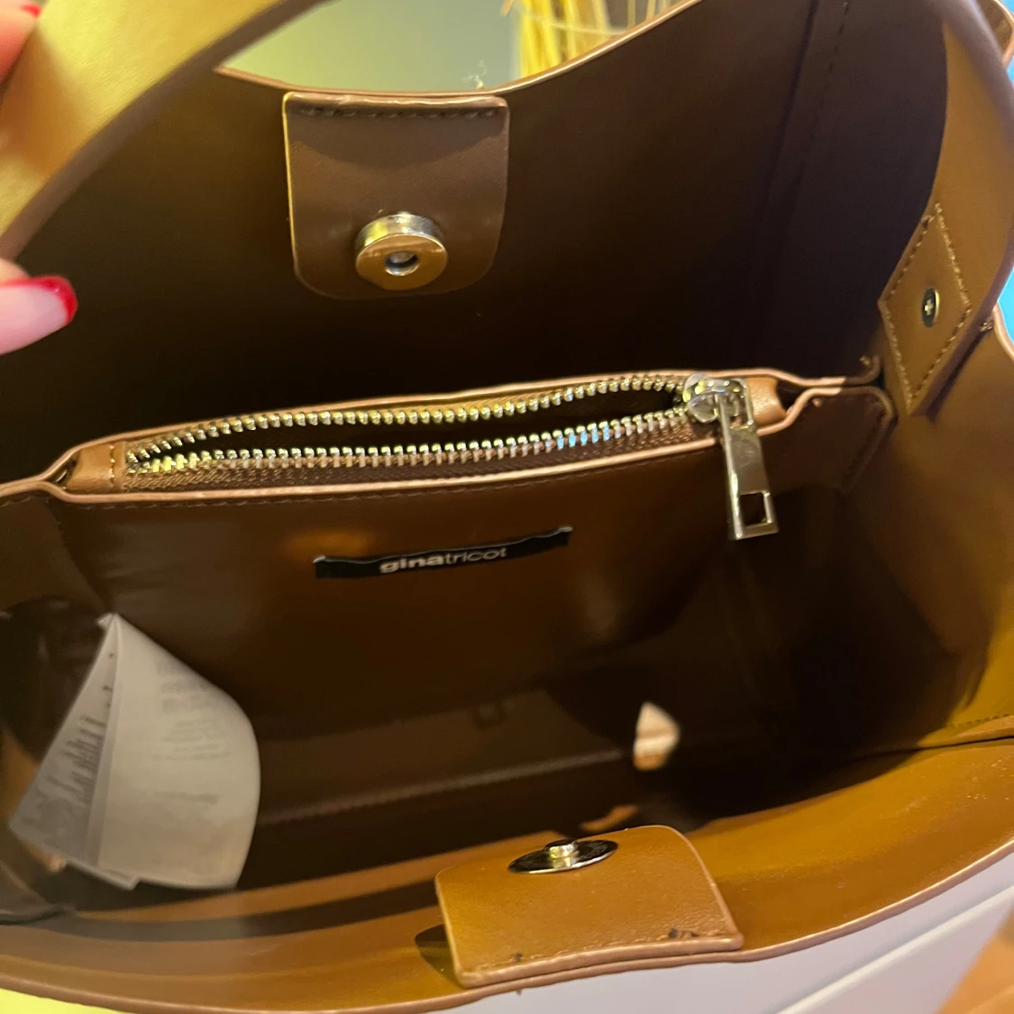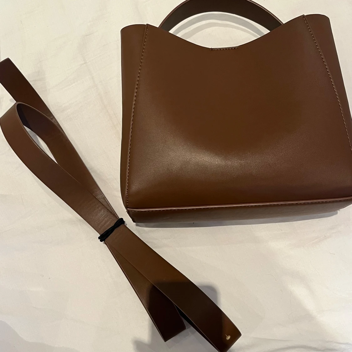 Snygg brun handväska från Gina Tricot i syntetmaterial. Väskan har en stilren design med en praktisk dragkedja inuti och en knappstängning. Perfekt för att bära dina dagliga nödvändigheter med stil. Långa band medföljer!❤️