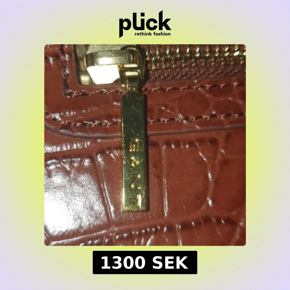 Snygg brun handväska från GANT i croco-mönstrat skinn med guldfärgade detaljer och dragkedja. Väskan har två handtag och en praktisk ytterficka med dragkedja. Perfekt storlek för att få plats med allt du behöver. Märkesdetaljer i guld framtill.