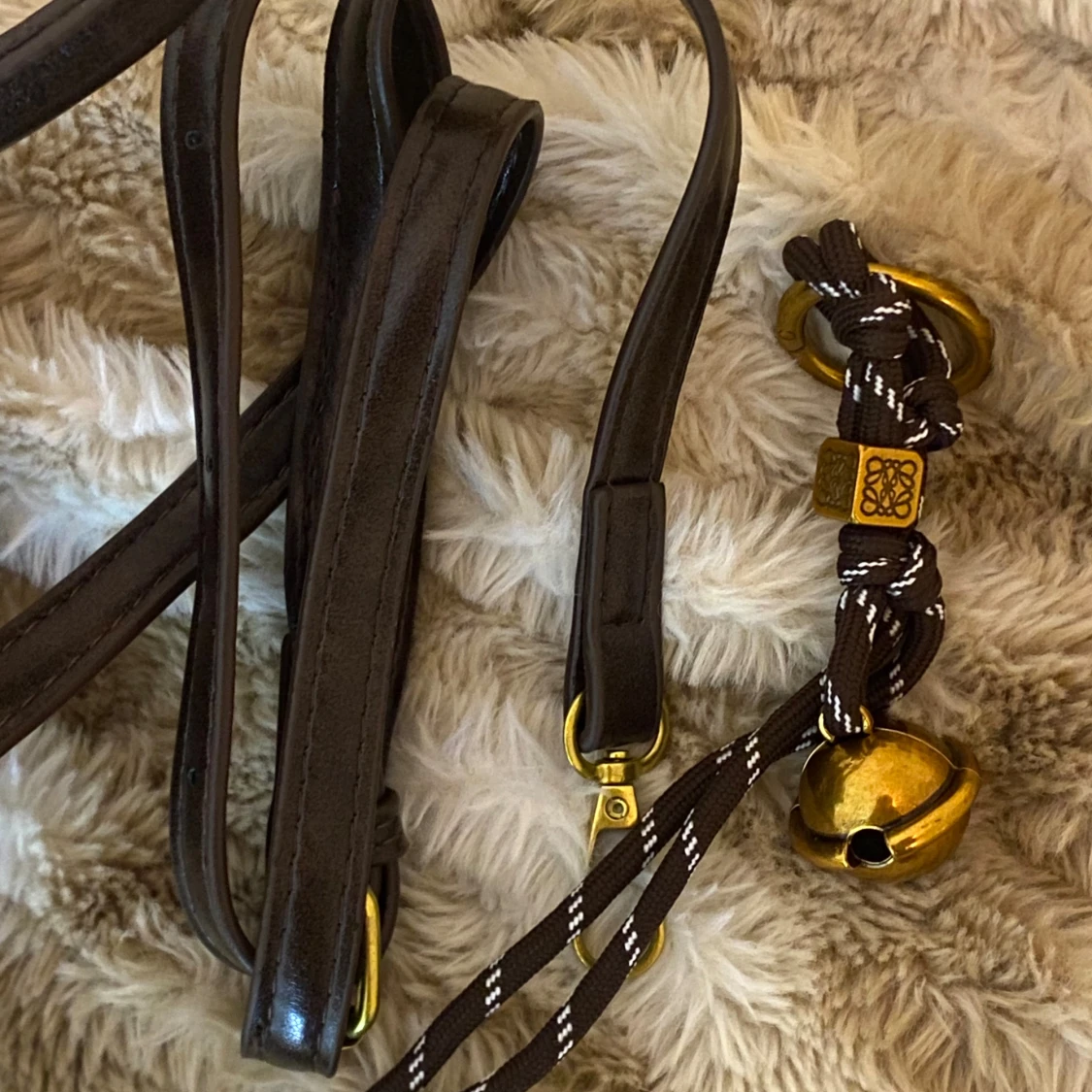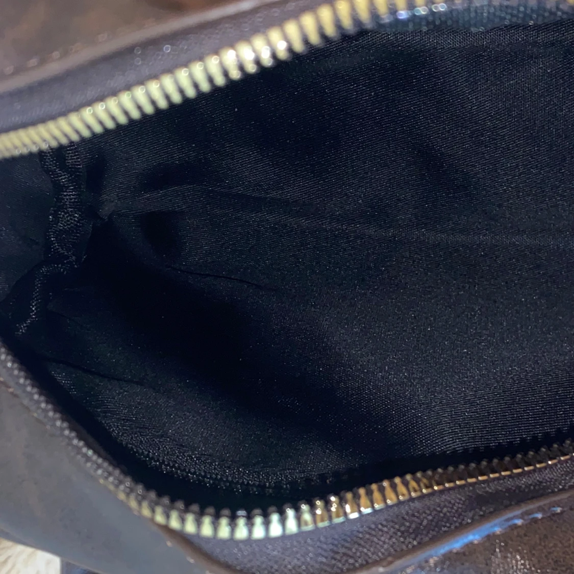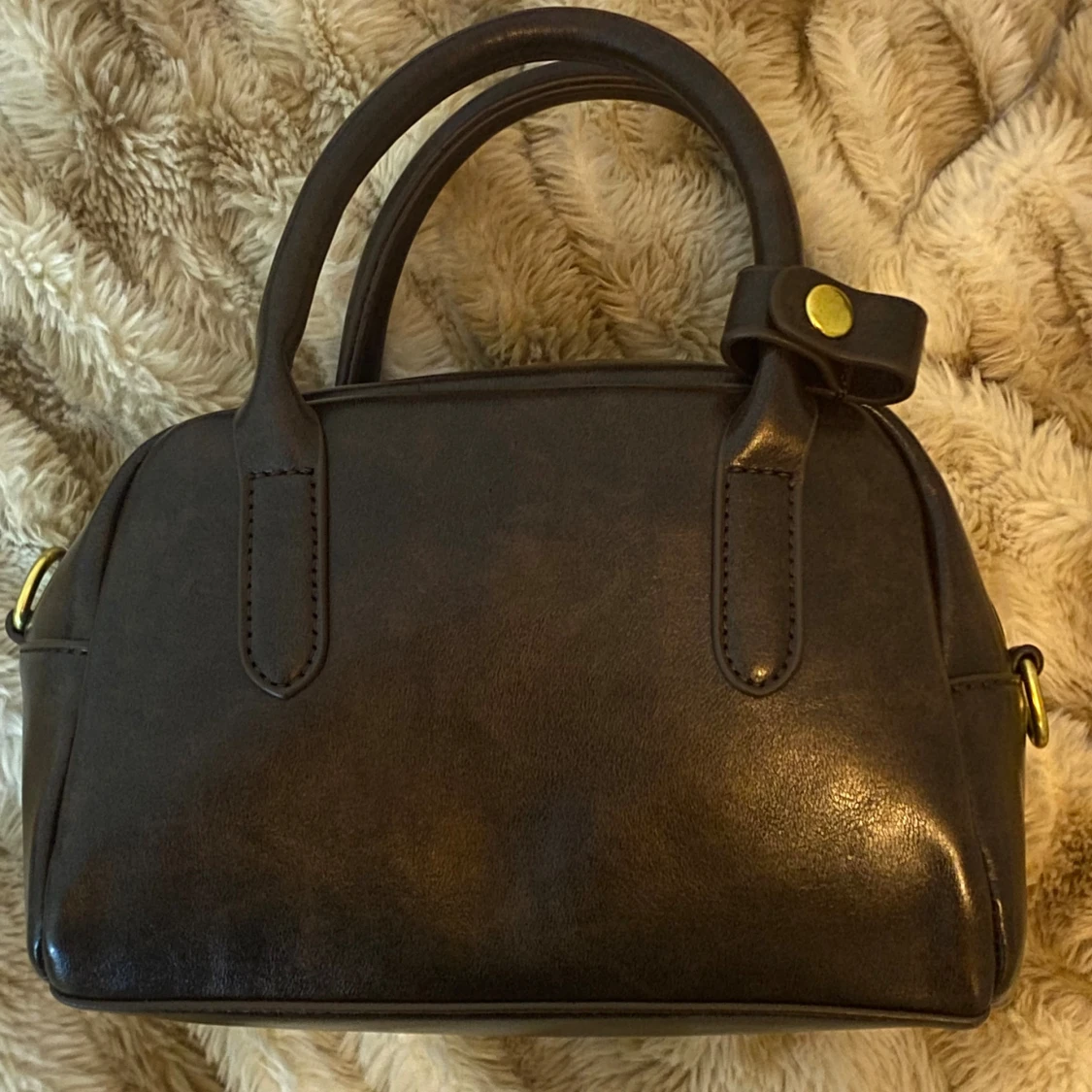 Brun handväska i skinn med gulddetaljer