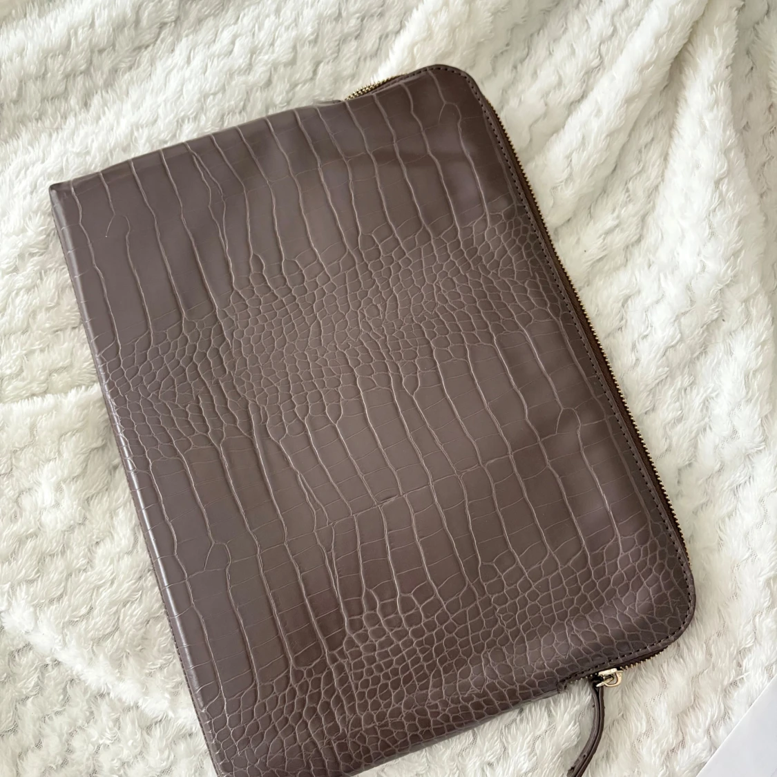 Säljer en stilren brun datorväska i skinn med croco-mönster på ena sidan och slät baksida. 35x25 cm 🤍