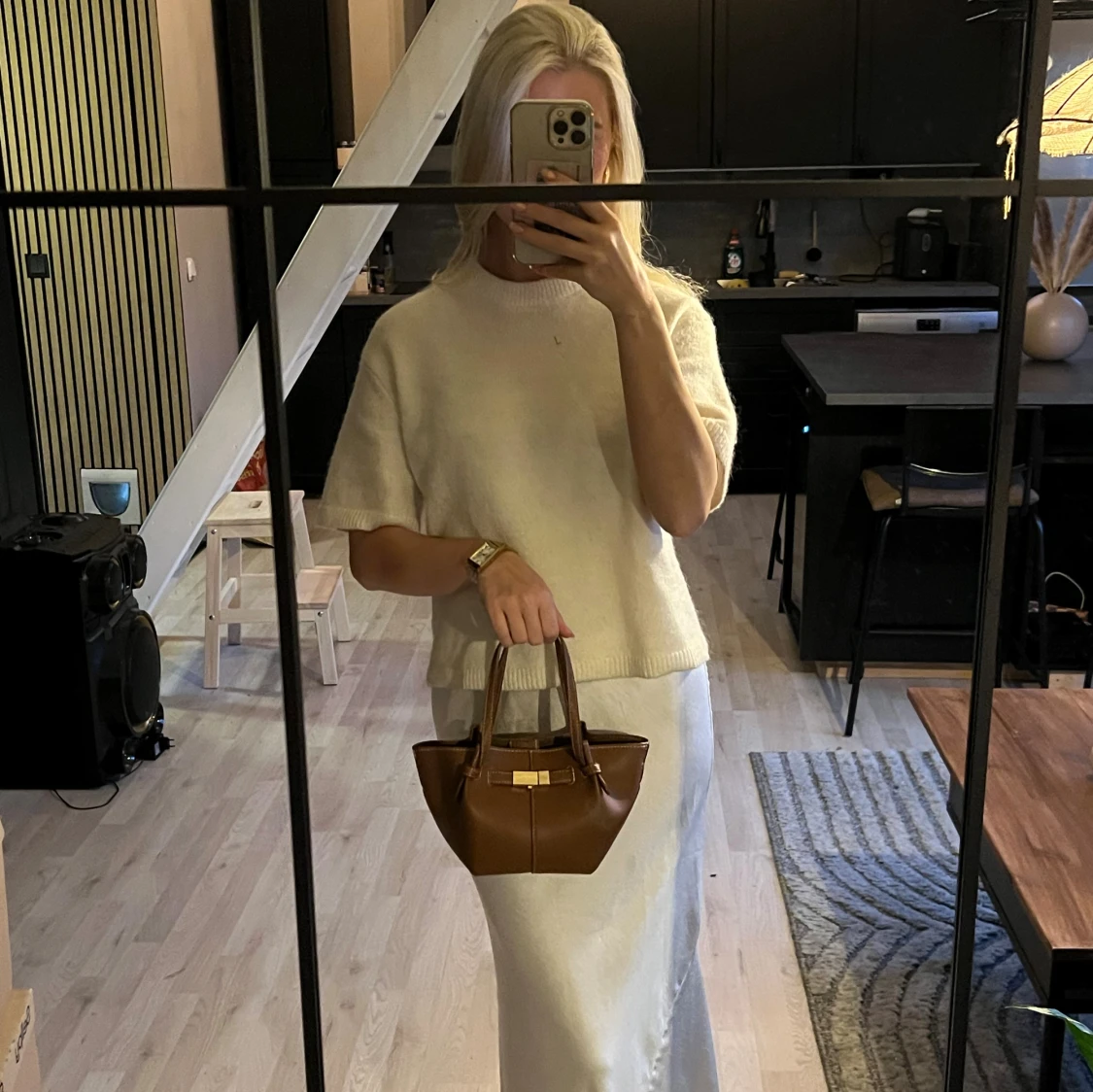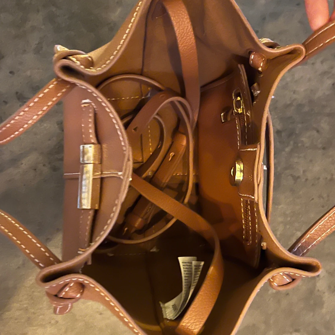 Brun handväska med gulddetalj