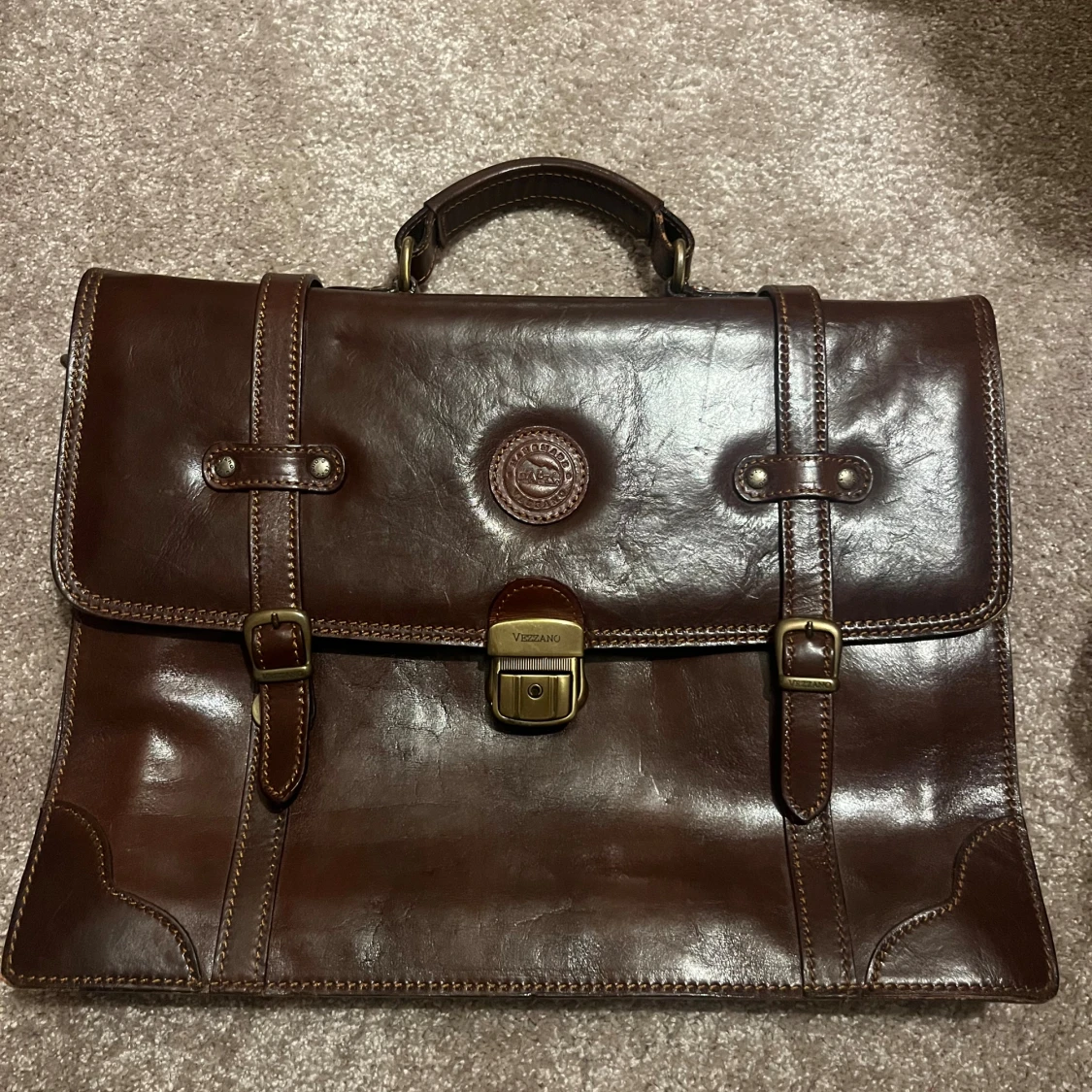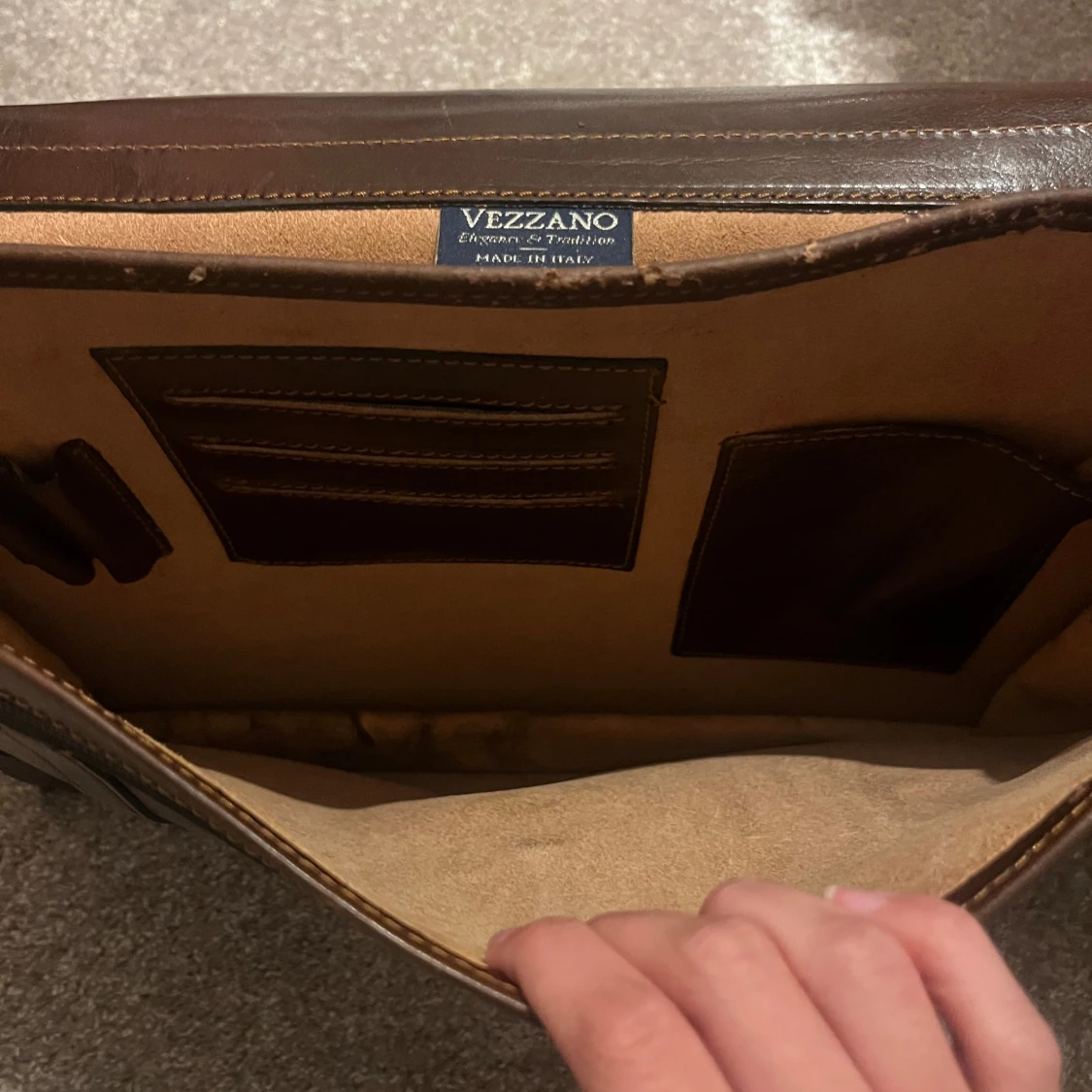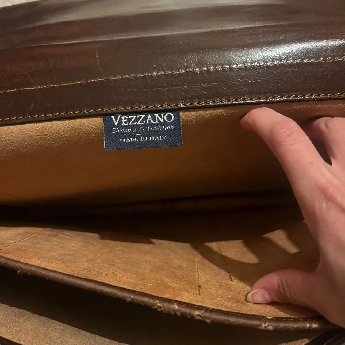 Klassisk brun portfölj från Vezzano i äkta skinn! Portföljen är lite smutsig inuti.
