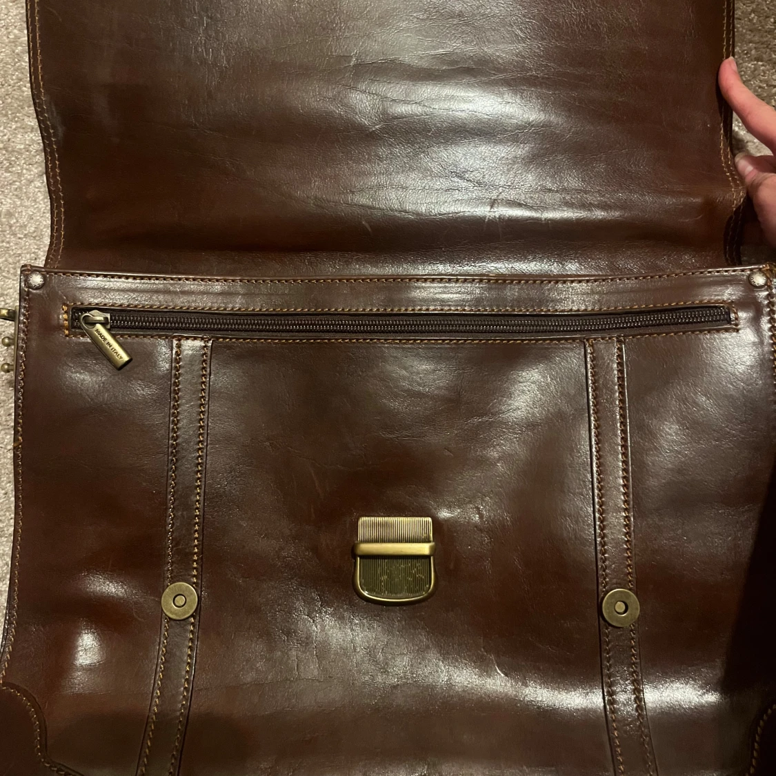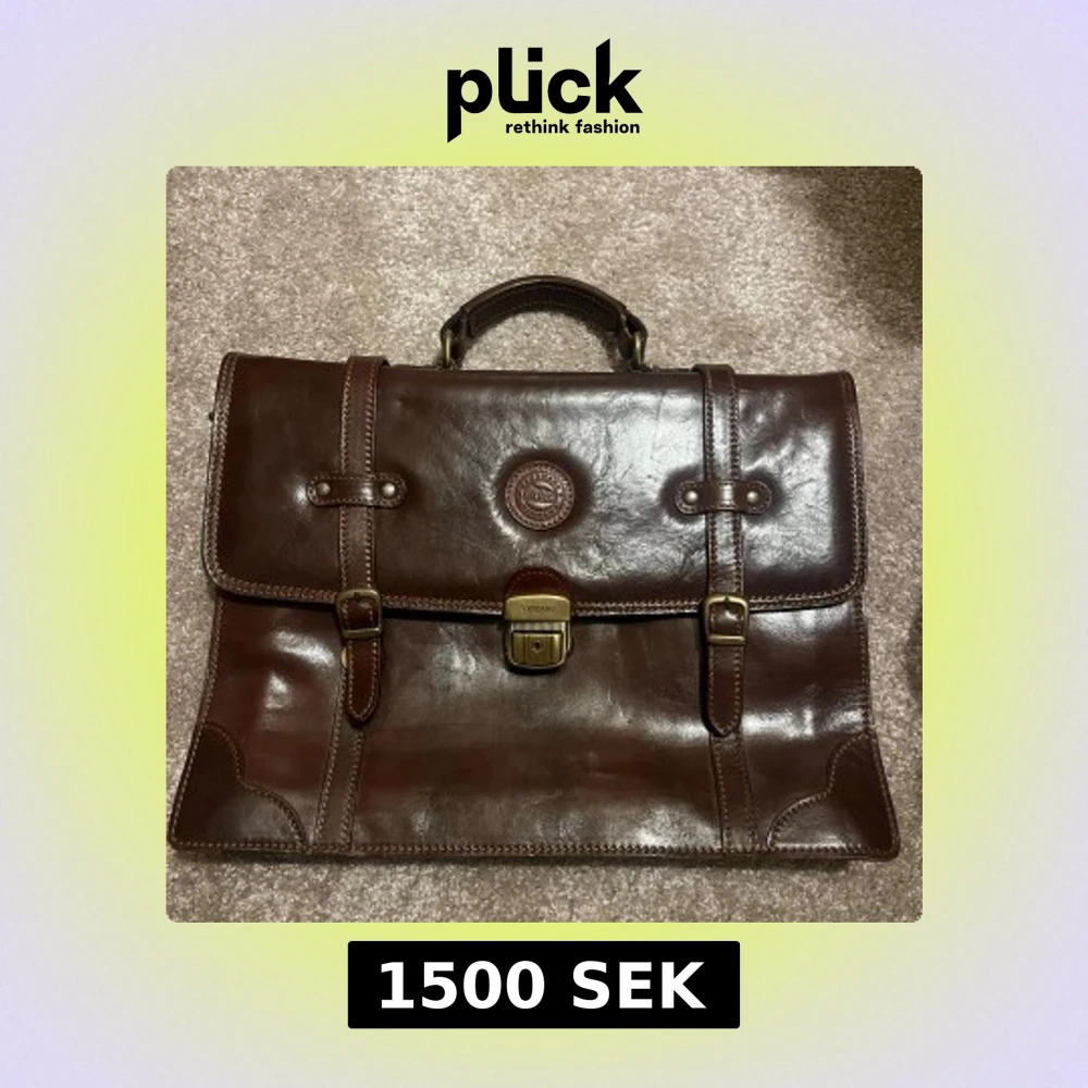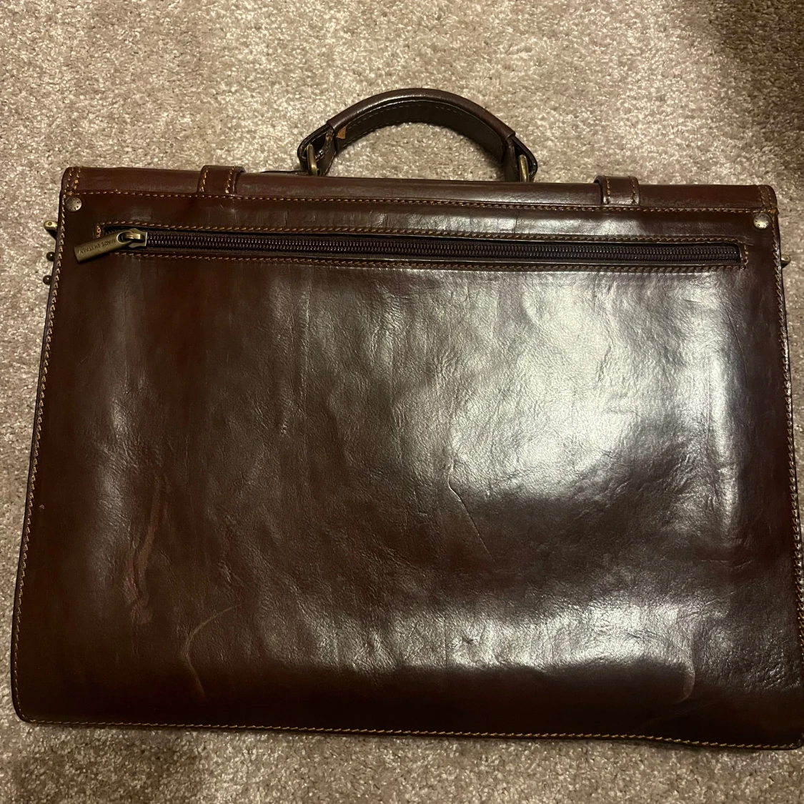 Klassisk brun portfölj från Vezzano i äkta skinn! Portföljen är lite smutsig inuti.