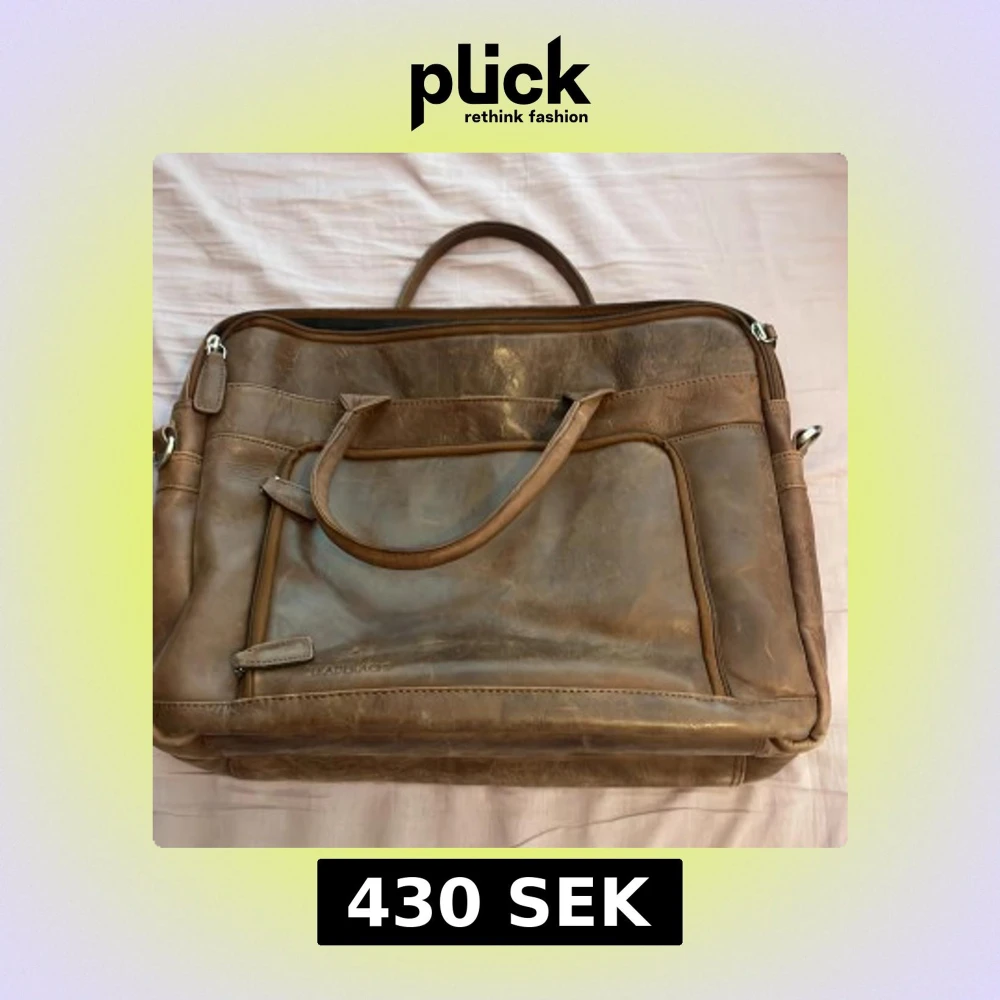 Snygg portfölj i brunt skinn från Saddler med flera fack och dragkedjor. Klassisk design med dubbla handtag och detaljer i silverfärgad metall. Perfekt för laptop och dokument, med rymligt innerfack och smarta fickor på utsidan.
