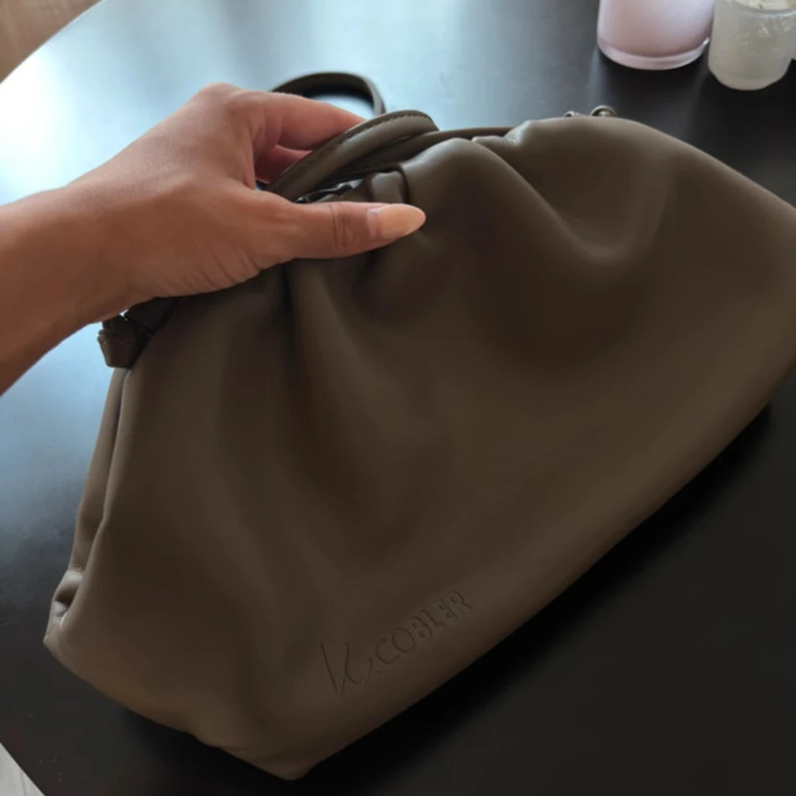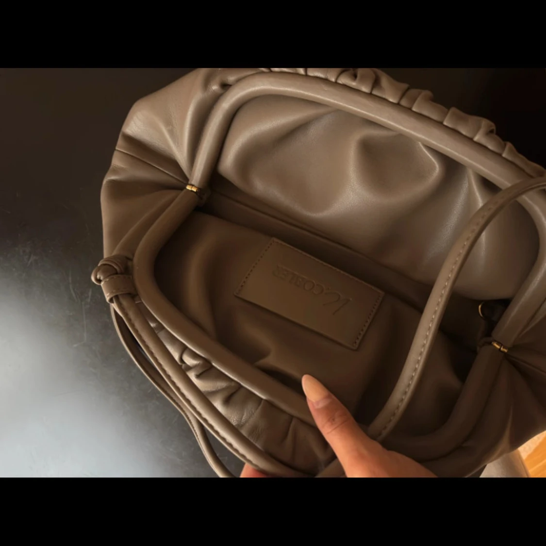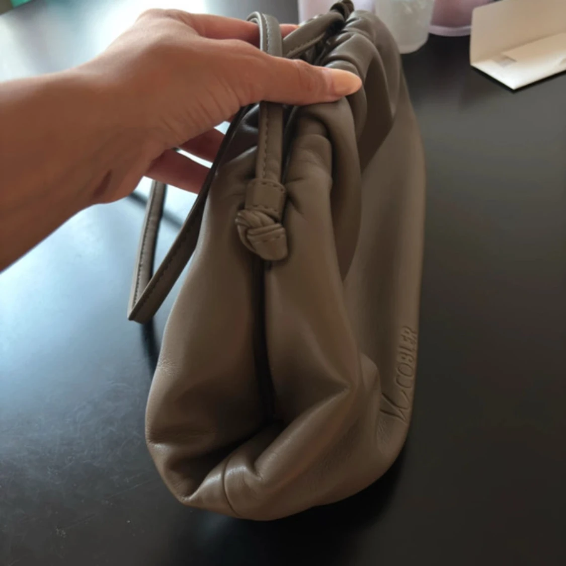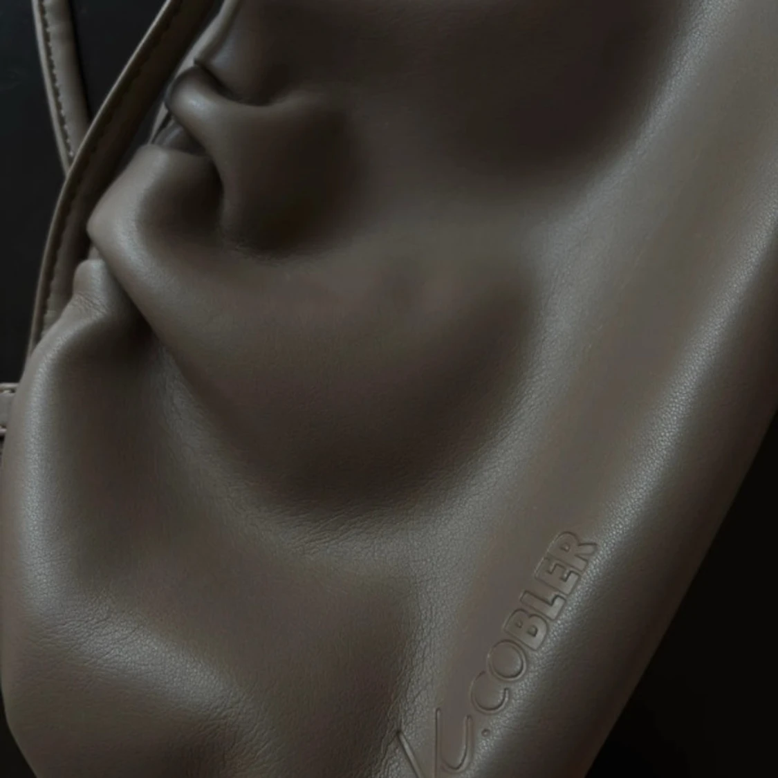 Säljer en snygg beige axelväska från V.Cobler i mjukt skinn. Väskan har en puffig, slouchy form med dragsko och stilren design. Perfekt storlek för det viktigaste och enkel att bära över axeln. Logga diskret präglad på framsidan.