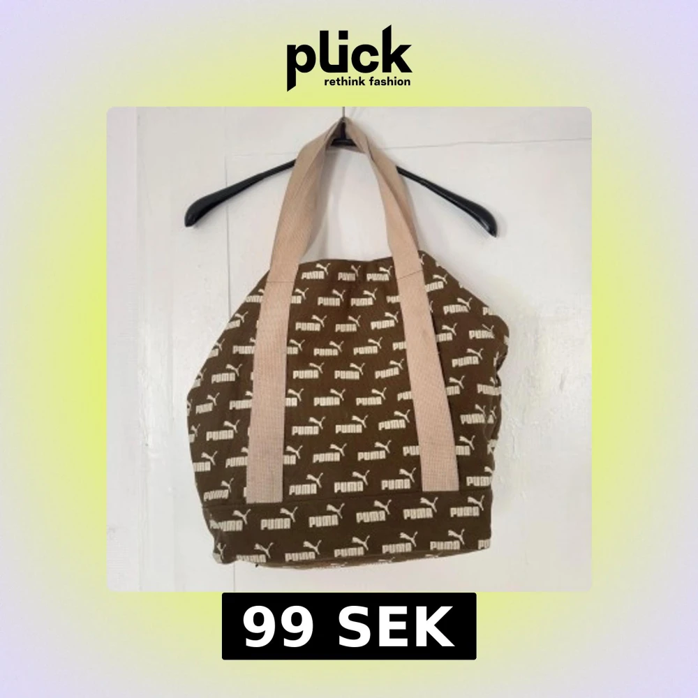 Cool brun shoppingväska från Puma med beigea handtag och all-over logomönster. Väskan är rymlig och har innerficka med dragkedja. Perfekt för att bära med sig allt man behöver till skolan eller stan.