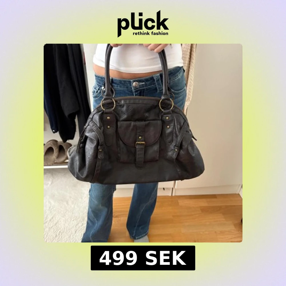 Säljer denna mörkbruna vintage väska köpt secondhand. Står inget märke i den. Bilderna är från förra ägaren!