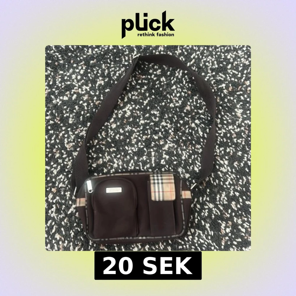 Säljer en brun axelväska från Burberry med klassiskt rutigt mönster på detaljerna. Väskan har justerbart band, flera fack framtill och dragkedja upptill. Perfekt storlek för det viktigaste och snygg att bära crossbody.