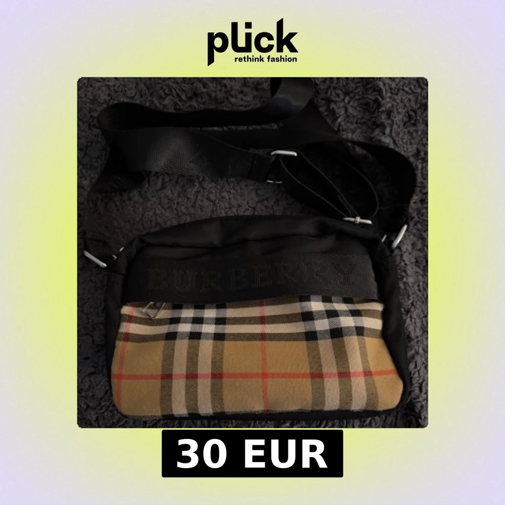 Säljer en Burberry axelväska med klassiskt rutigt mönster i beige, svart, vitt och rött. Väskan har svart ovandel och baksida, justerbart axelband med Burberry-logga och silverfärgade detaljer. Perfekt storlek för det viktigaste och riktigt snygg streetstil.
