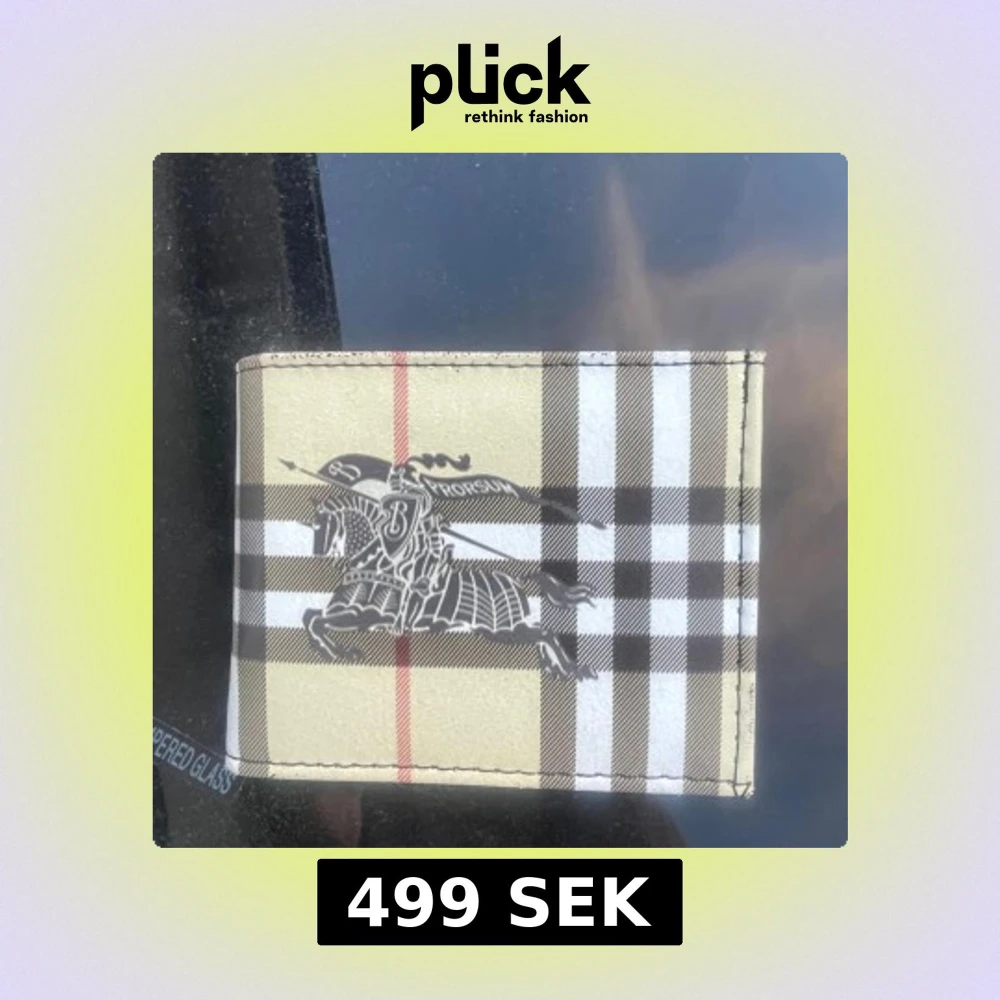 Snygg plånbok från Burberry med klassiskt rutigt mönster i beige, svart, vitt och rött. Framsidan har den ikoniska riddarloggan tryckt i svart. Plånboken är tillverkad i skinn och har en stilren, tidlös design som passar perfekt i fickan.
