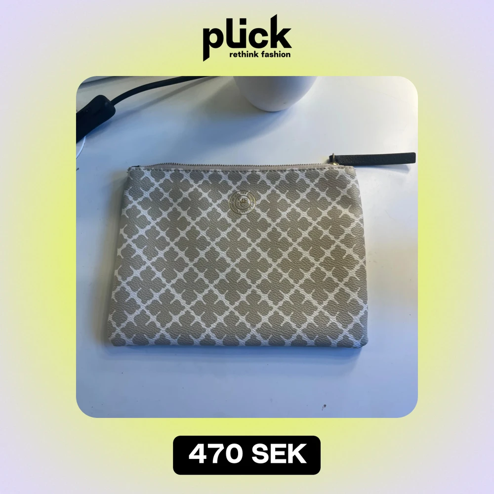 Snygg beige kuvertväska med vitt mönster från By Malene Birger. Väskan har en praktisk dragkedja och är perfekt för att hålla ordning på dina småsaker. Stilren och enkel att matcha med olika outfits.