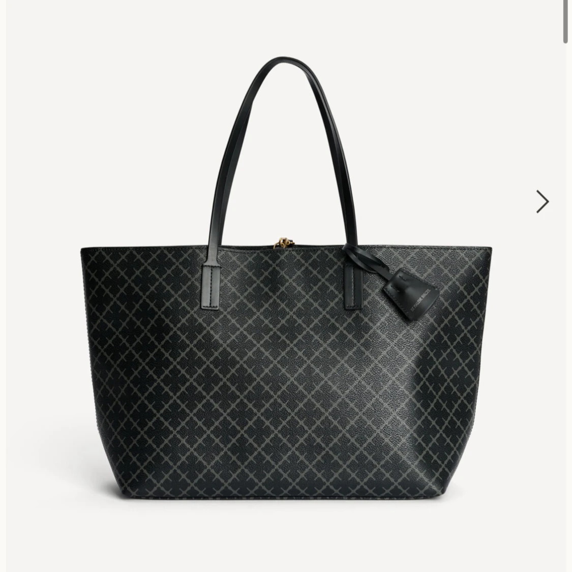 Stilren svart shoppingväska från By Malene Birger med klassiskt rutigt mönster och långa handtag. Väskan är rymlig och har detaljer i guld samt en tag med logga. Tillverkad i slitstarkt syntetmaterial med elegant finish.