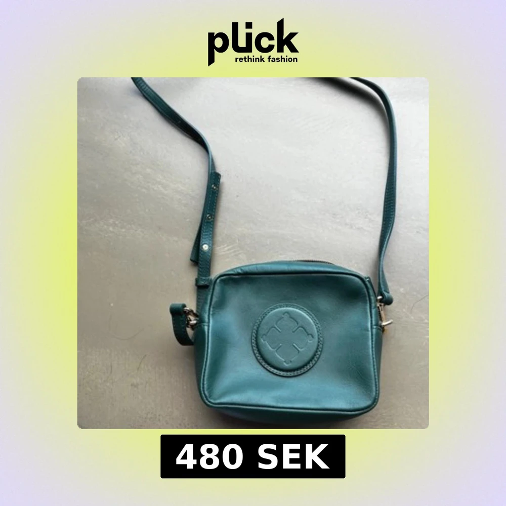 Snygg turkos axelväska med justerbar axelrem och dragkedja. Väskan har en rund logotyp på framsidan och ett rymligt fack inuti. Perfekt för att bära dina dagliga nödvändigheter med stil.