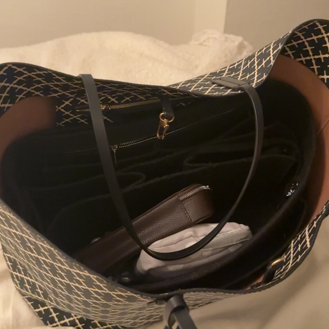 rymlig väska från By Malene Birger med klassiskt rutigt mönster i beige och svart. Super snygg och knappast använd, lite defekter av smink inne i väskan men nästan helt säkert att det går att ta bort! Perfekt för exempelvis skola🥰