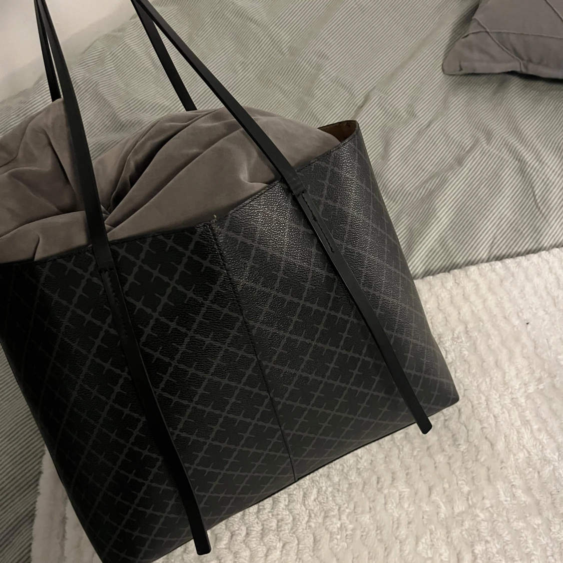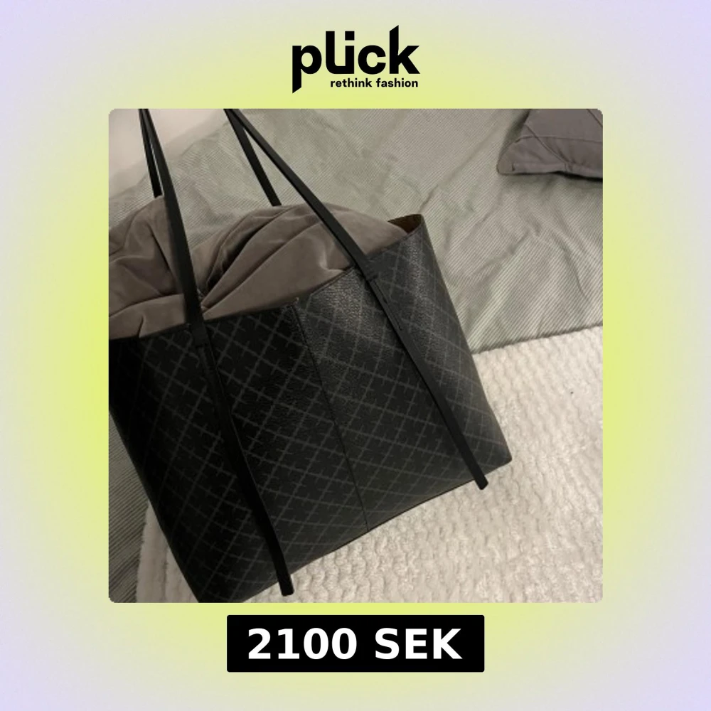 Rymlig svart shoppingväska med stilrent rutigt mönster. I superfint skick, använd endast fåtal gånger. Köpt för 3495. Modellen heter Abigail.