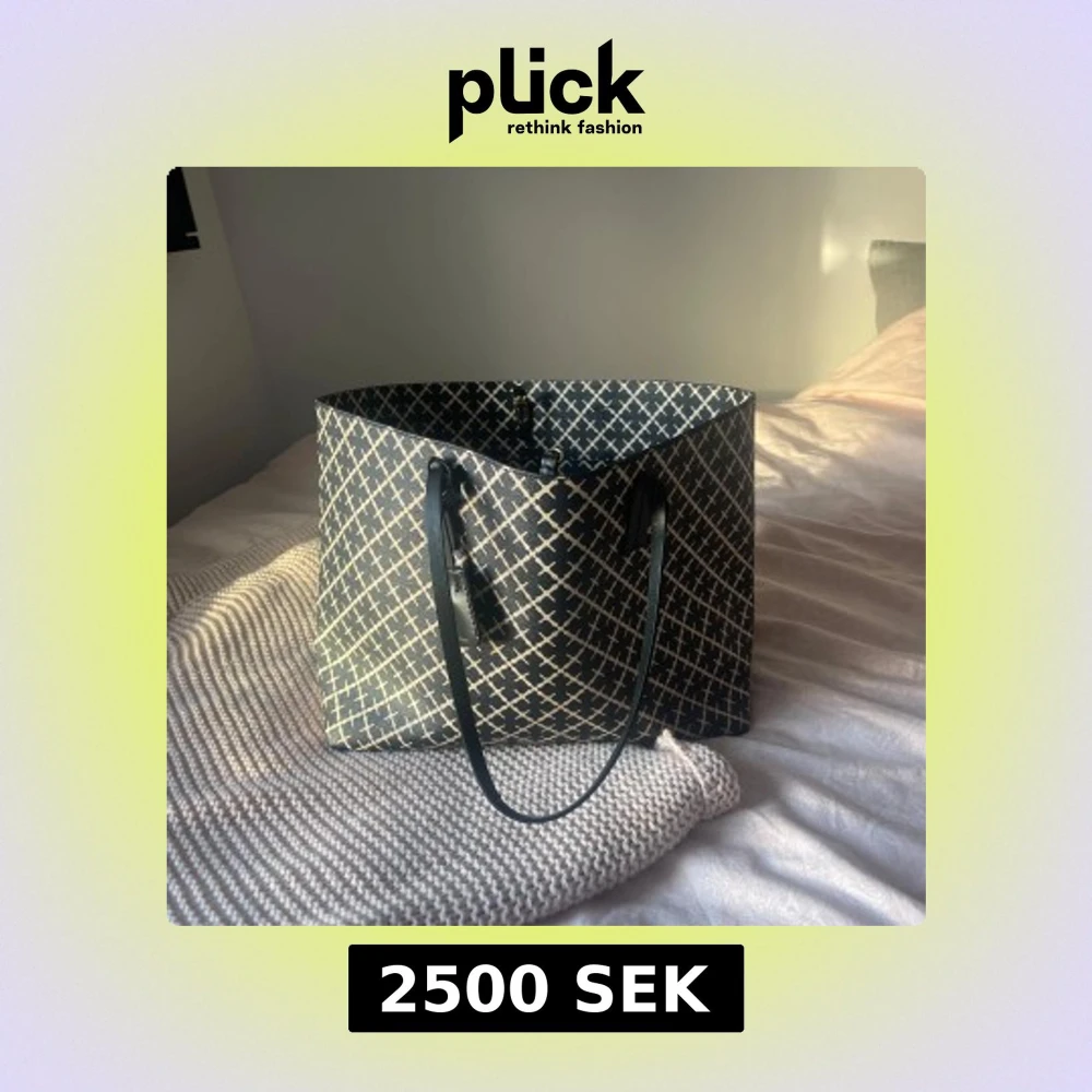 Snygg shoppingväska från By Malene Birger med ett stilrent mönster i svart och beige. Väskan har två svarta handtag och en praktisk dragkedja på insidan. Perfekt för att bära med sig allt man behöver under dagen. Denna modellen är lite mindre i storleken än dom vanliga väskorna.