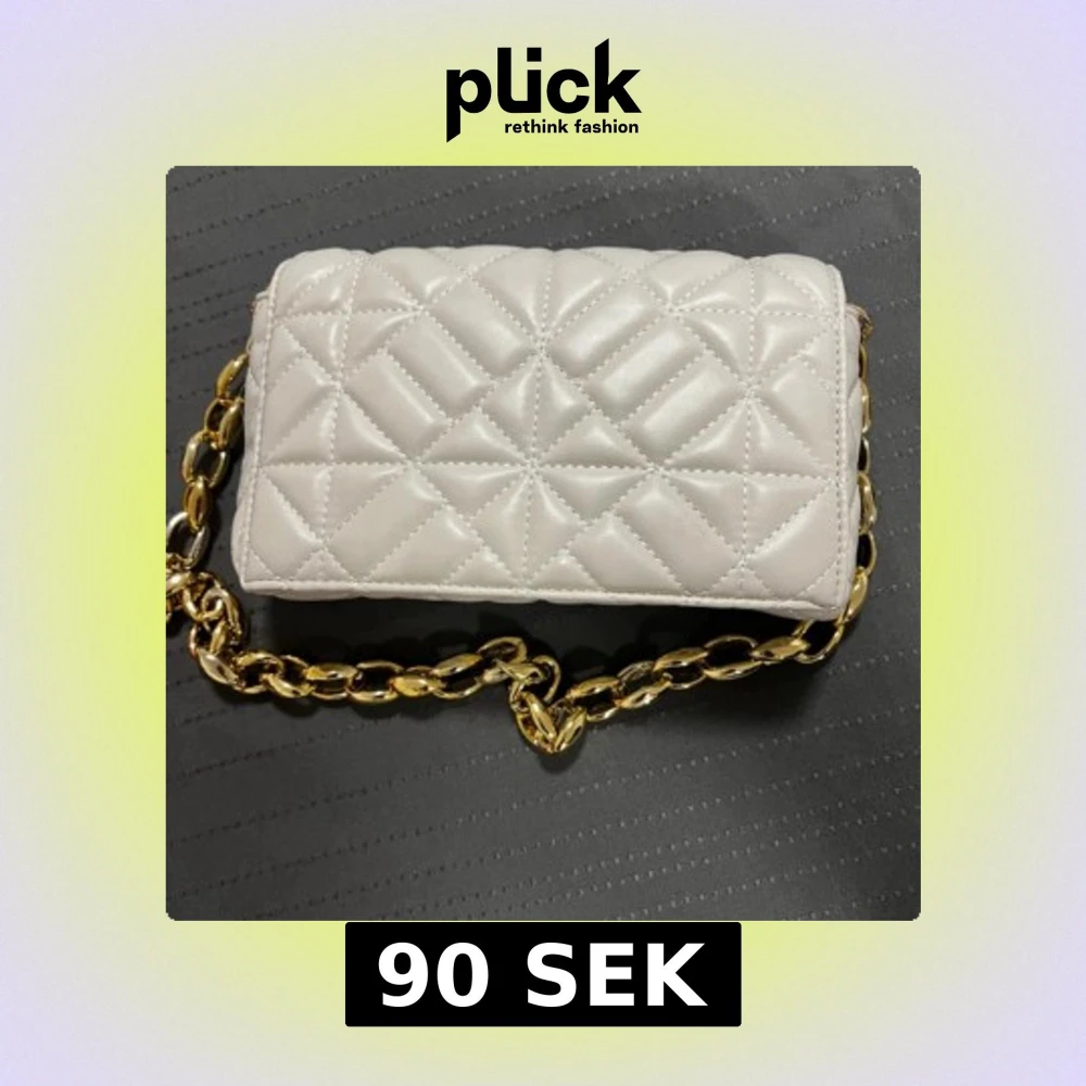 Snygg vit quiltad axelväska med en elegant guldkedja som axelrem. Väskan har en praktisk innerficka med dragkedja och stängs med en tryckknapp. Perfekt för att ge din outfit en lyxig touch.