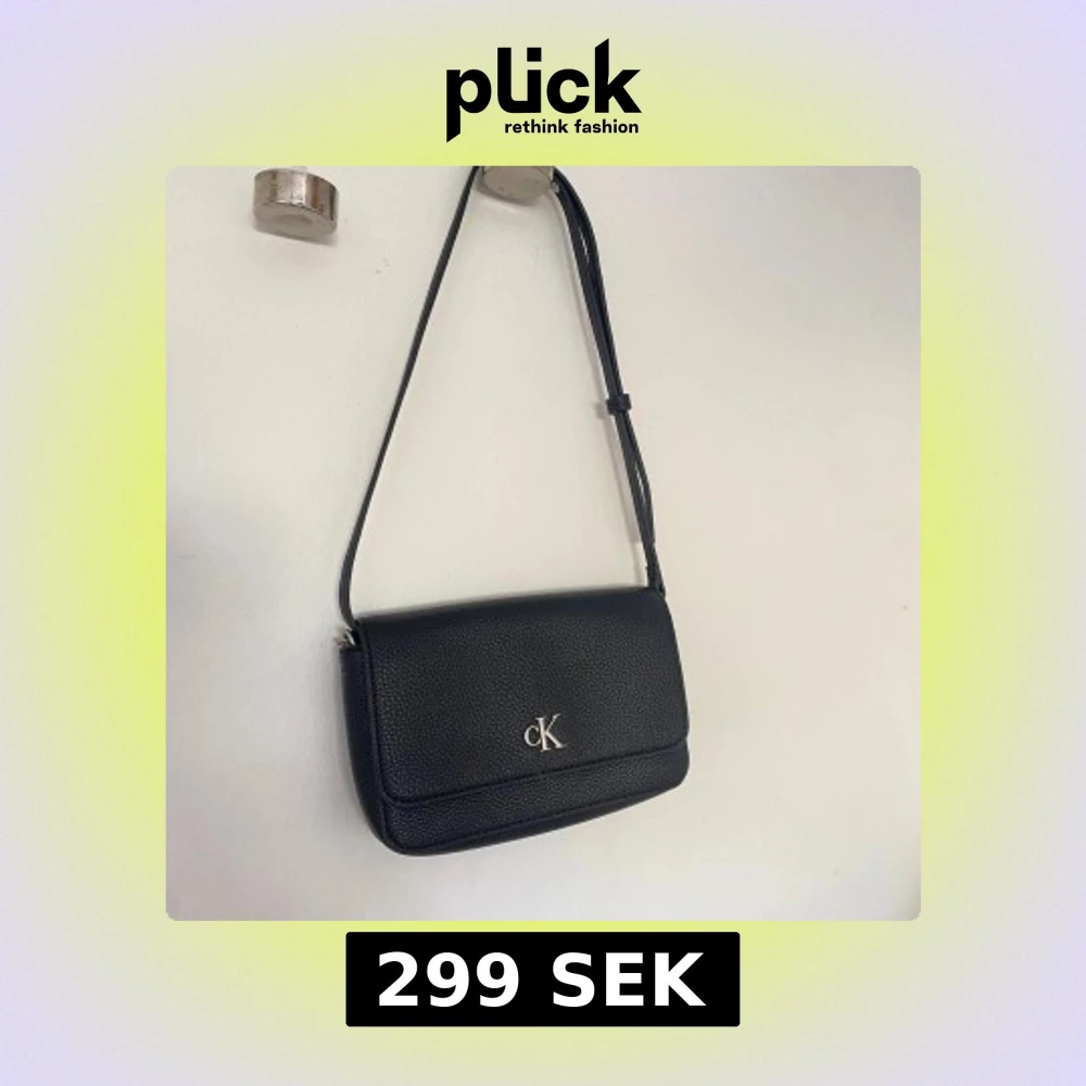 Snygg svart axelväska från Calvin Klein i strukturerat skinn med axelrem som man stoppa in och ha som lång och silverfärgad kedjedetalj. Väskan har stilren design med cK-logga framtill och praktiskt fack på baksidan. Perfekt storlek för det viktigaste.