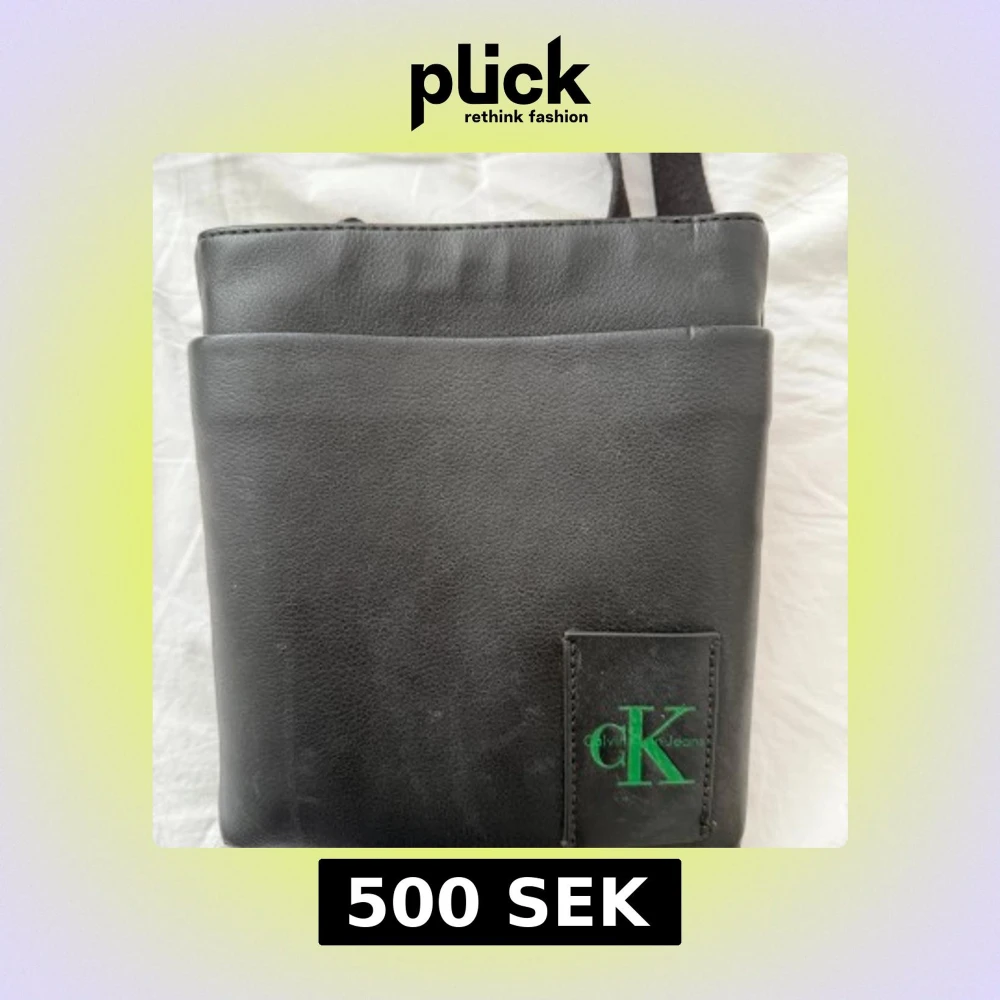 Minimalistisk svart axelväska från Calvin Klein Jeans i skinn med justerbar axelrem i textil. Väskan har en stilren design med CK-logga i grönt framtill och ett praktiskt ytterfack. Perfekt storlek för mobil, plånbok och andra småsaker.