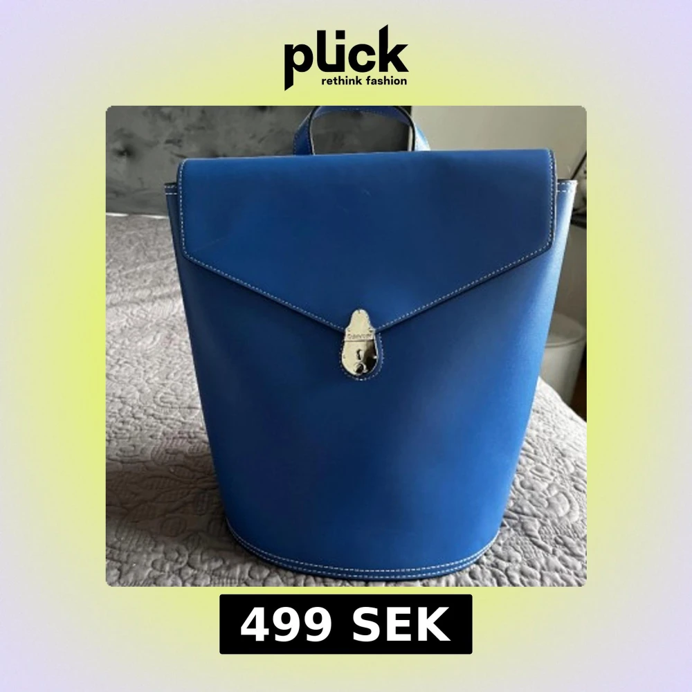 Säljer en stilren blå axelväska från Calvin Klein med vit kontrastsöm och silverfärgat lås framtill. Väskan har en unik form, justerbara axelremmar och är tillverkad i slätt skinn. Perfekt för dig som vill ha en snygg accessoar med plats för det viktigaste.. Finns defekt på baksidan se bild. Köpt för 1500kr. Kan diskutera pris vid snabb affär. Köpt 2021 och har orginal påse.