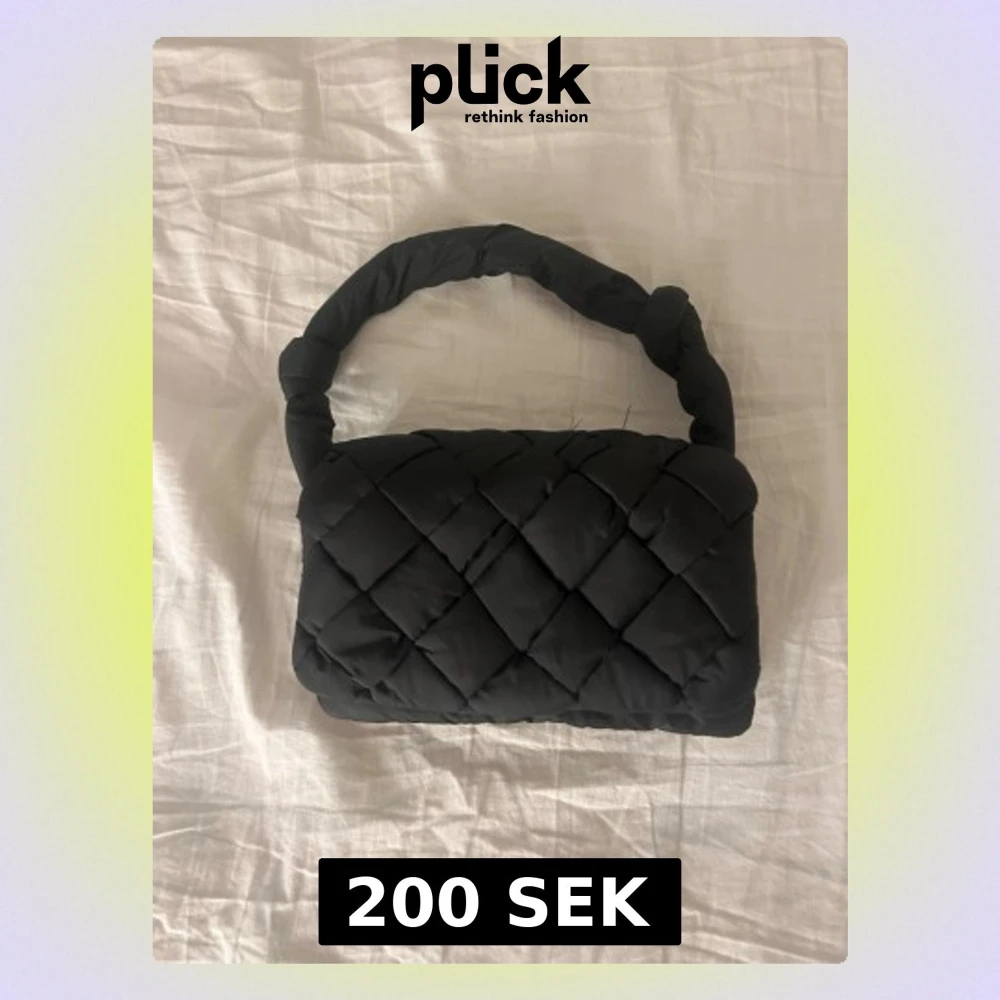 Säljer en svart quiltad handväska från Carin Wester med vadderat material och flätat handtag. Väskan har två stora fack och en innerficka med dragkedja. Perfekt storlek för det viktigaste och riktigt snygg design.