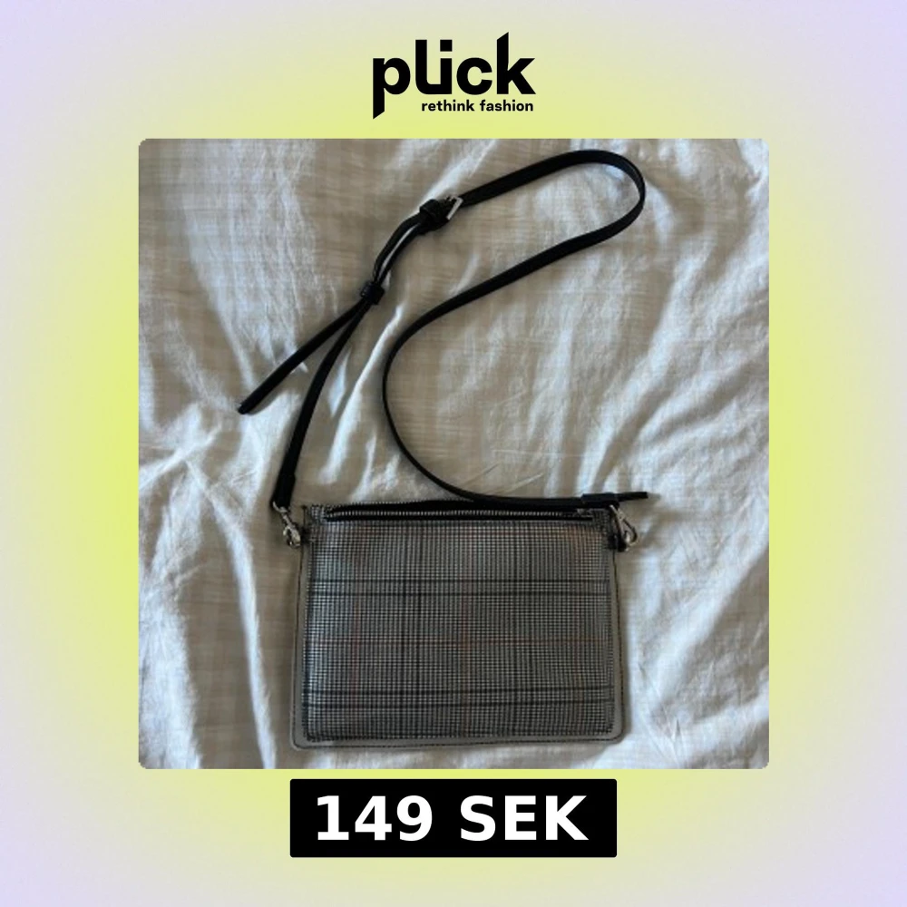 Snygg och smidig axelväska med rutigt mönster i grått, svart och röda linjer. Väskan har en justerbar svart axelrem och öppnas med en silverfärgad dragkedja. Insidan har flera fack för kort och småsaker. Perfekt för att bära med det viktigaste.