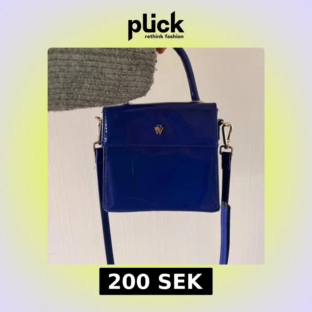 Snygg blå axelväska i glansigt syntetmaterial från Carin Wester. Väskan har en axelrem som går att ta bort. Perfekt storlek för mobil och småsaker, med magnetlås och enkel logga framtill. Tyvärr några små skador på framsidan men inget som märks på håll💕💕