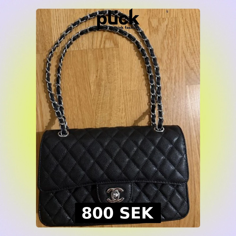 En sofistikerad axelväska i strukturerat caviar-läder som kombinerar klassisk elegans med modern funktion. Väskan har ett stilrent quiltat mönster som ger ett exklusivt uttryck och samtidigt gör lädret extra slitstarkt och tåligt för vardaglig användning. Den silverfärgade kedjeremmen, flätad med läder, ger en lyxig känsla och kan bäras både på axeln eller i handen. Väskans lock stängs med ett dekorativt vridlås i metall som ger ett diskret men ikoniskt intryck.
