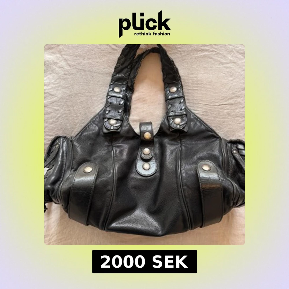 Säljer denna svarta handväska från Chloé med silverfärgade knappar och detaljer. Väskan har dubbla handtag med flätad design och fickor på sidan. Mårten är cirka i cm 40 x 20 x 15. Använd väl därav lite defekter särskilt på knapparna som blivit lite rostiga (se sista bilderna), därför också ett lägre pris! Skriv för fler bilder!