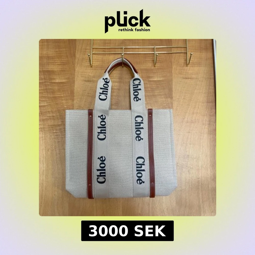 Snygg och rymlig shoppingväska från Chloé i beige canvas med bruna skinn-detaljer. Väskan har breda handtag med Chloé-logga i svart och stilren design. Oanvänd. Nypris är 10000kr.