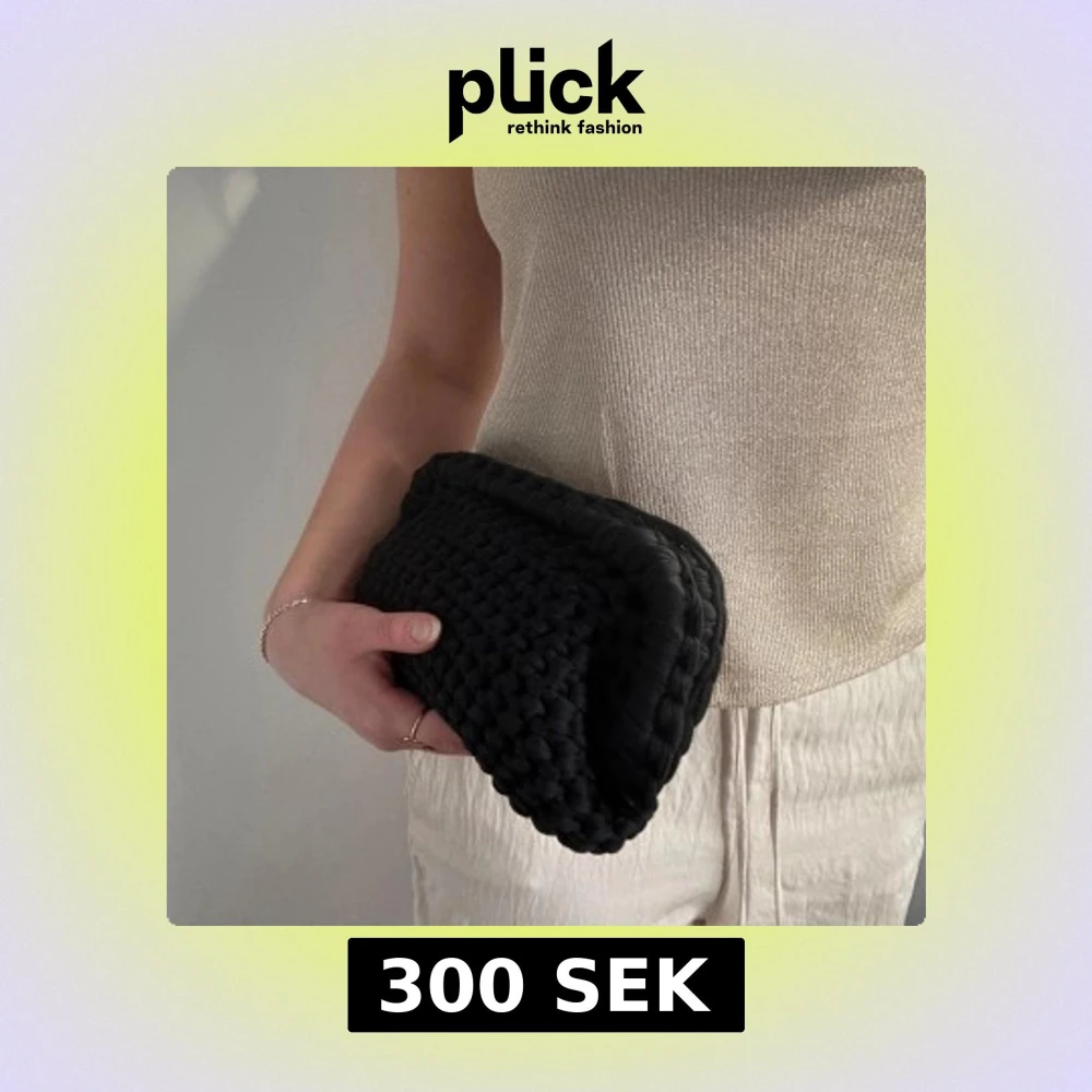 Säljer en svart handvirkad clutch / handväska som jag har virkat! Väskan är i ett mjukt garn och är väldigt rymlig! Kan bäras i handen som en clutch eller bäras i handtaget. Kan Även Göra Andra Färger / storlekar💕 skriv för mått, olika på vissa 💕