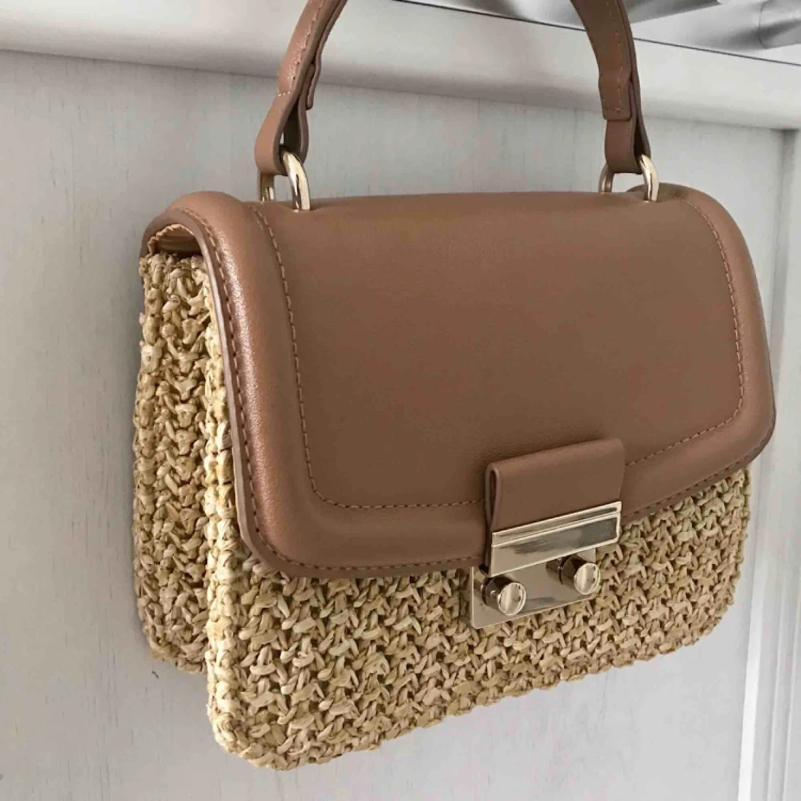 Jättesöt clutch/basket bag med tillhörande axelband och gulddetaljer. Köpt för något år sen. Använd varsamt så är som ny!
