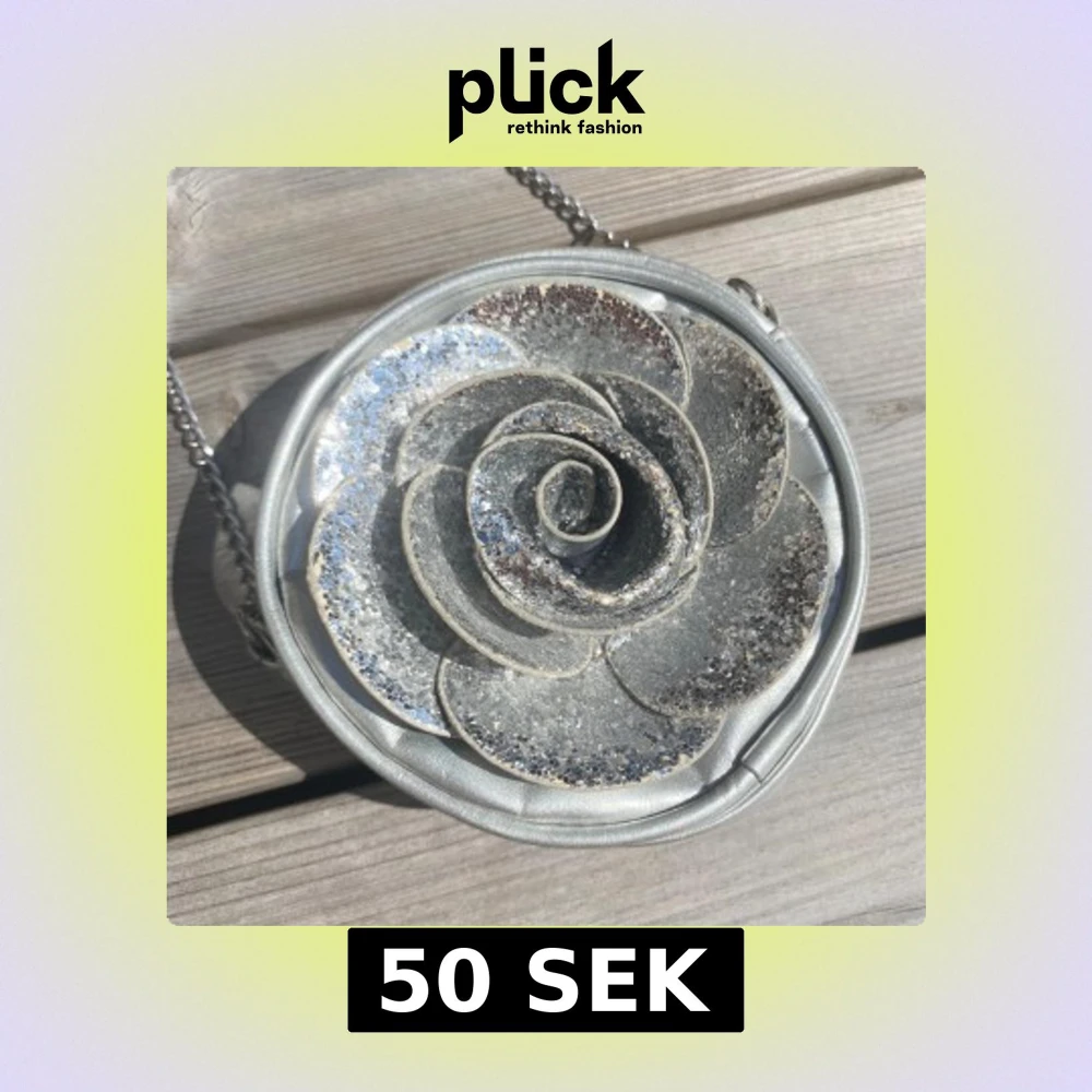 Säljer en rund axelväska i silver med en stor glittrig blomma framtill. Väskan har en cool metallic-look och är perfekt för dig som vill sticka ut. Väskan har dragkedja upptill! Inga defekter förekommer!😇💕