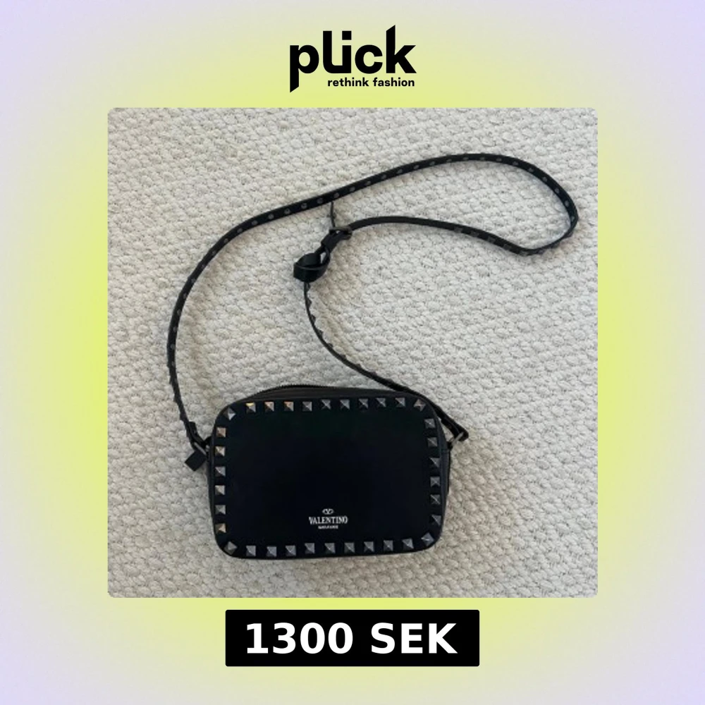 Säljer en svart axelväska med coola nitar runt kanterna. Väskan har justerbar axelrem och dragkedja upptill. Perfekt för dig som vill ha en edgy och stilren accessoar till din outfit.
